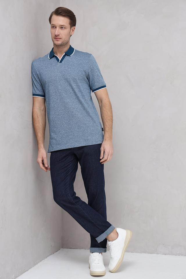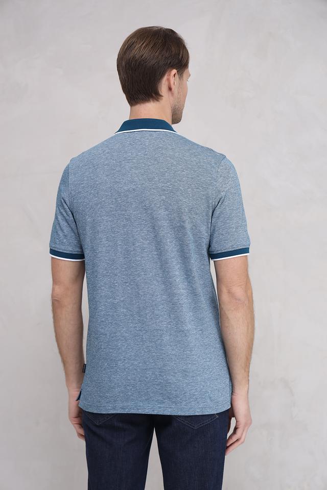 Мужское поло от Bugatti выполнено в приятном голубом цвете с добавлением меланжевой текстуры. Модель отличается контрастной отделкой воротника и коротких рукавов, выполненной в тёмно-синем и белом цветах, что придает ей особый стиль.