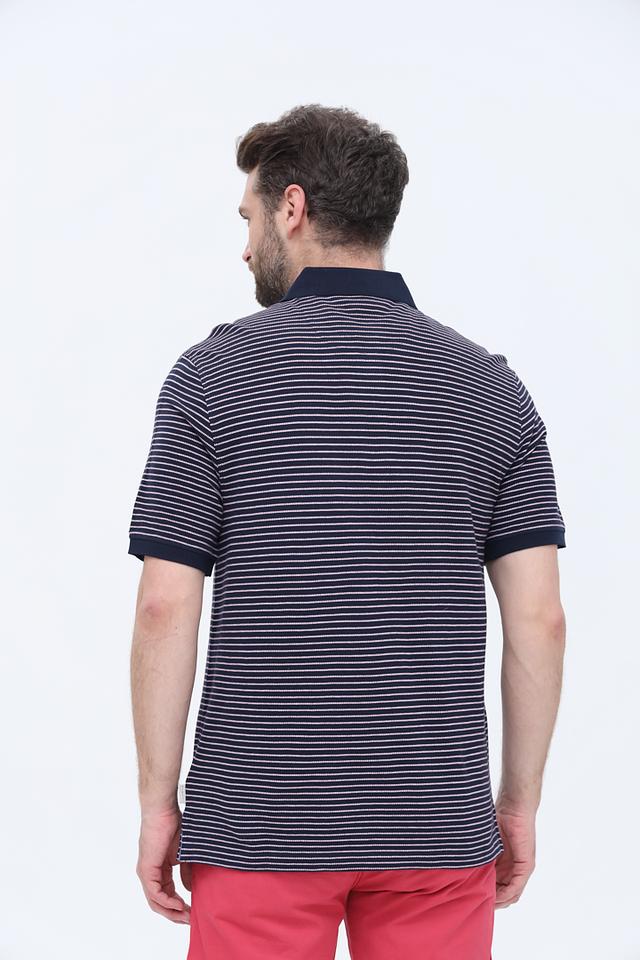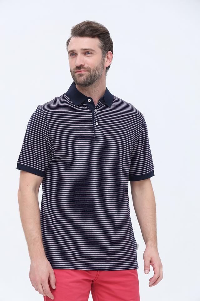 Мужское поло Bugatti синего цвета с классическим дизайном в полоску. Изготовлено из высококачественного хлопка с добавлением эластана для комфорта и свободы движений. Идеальный выбор для повседневного образа. Состав: хлопок 96%, лайкра 4%