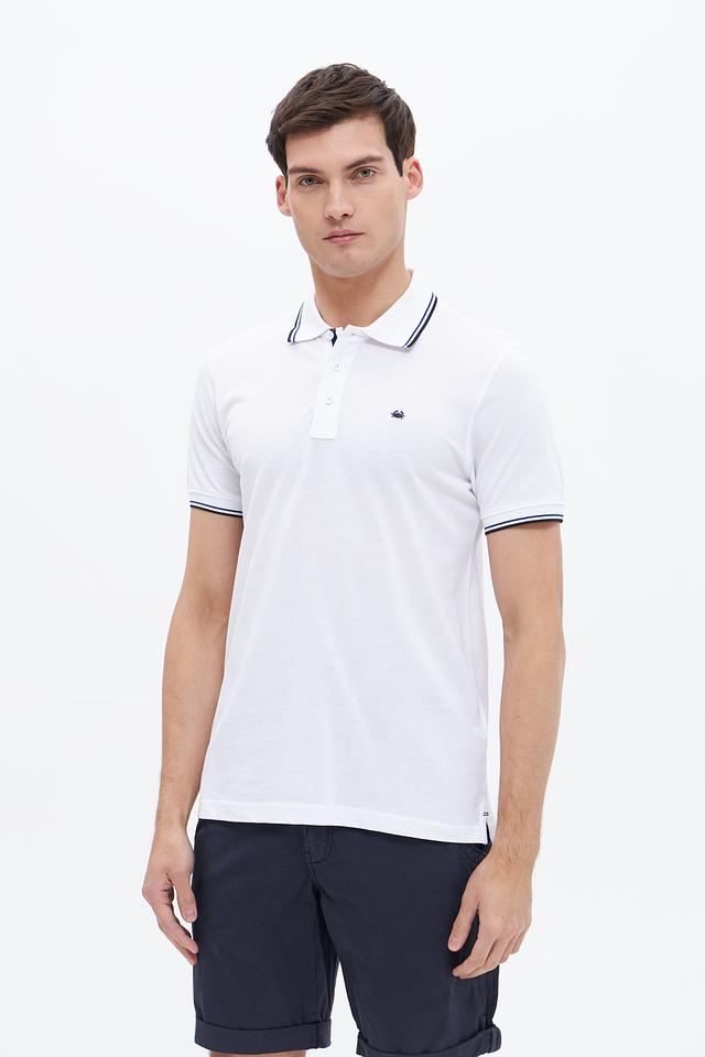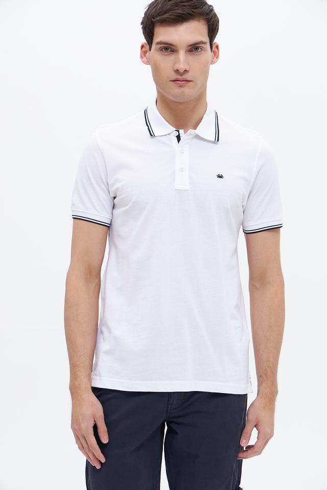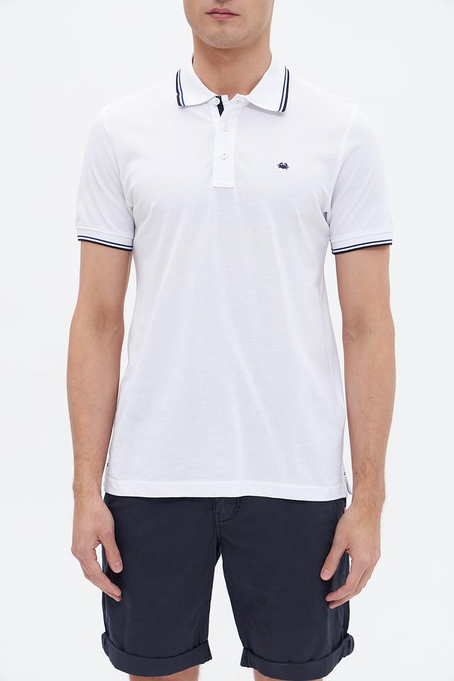 Белое поло Granchio с контрастной полоской на воротнике и рукавах. Изготовлено из 100% хлопка, обеспечивающего комфорт и воздухопроницаемость. Состав: хлопок 100%