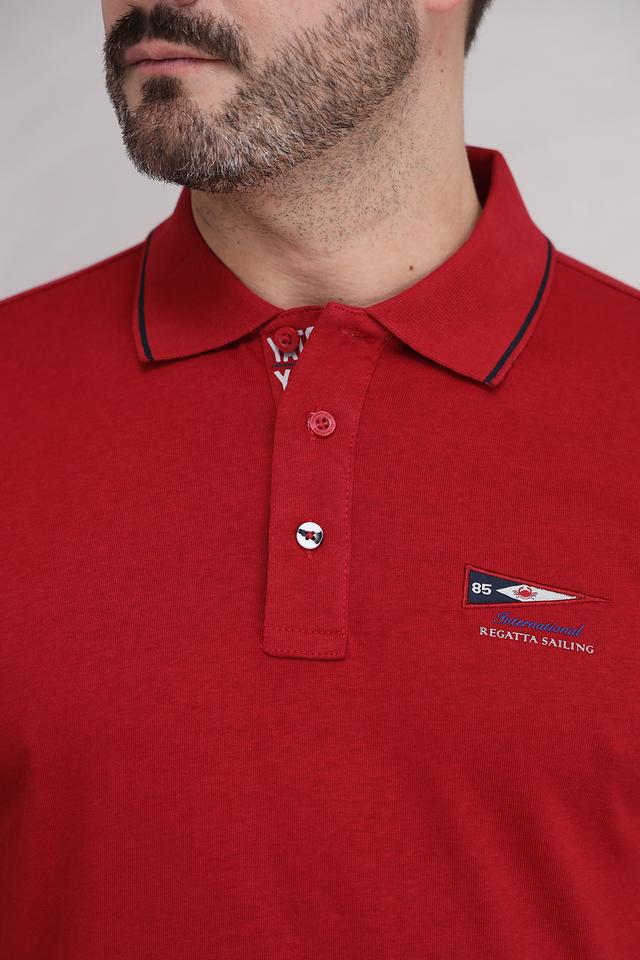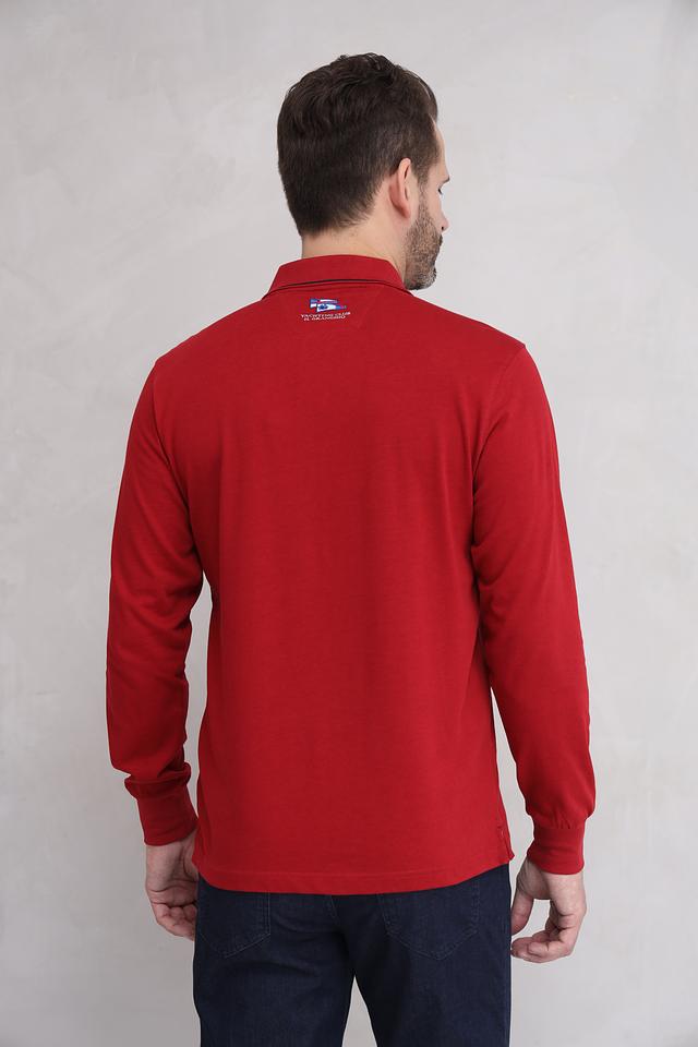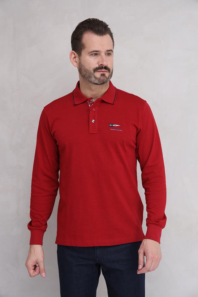 Мужское поло от бренда Granchio выполнено в насыщенном красном цвете. Модель с длинным рукавом и классическим воротником-поло.