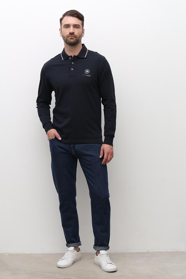 Мужское поло от Granchio выполнено в классическом тёмно-синем цвете. Изделие имеет длинный рукав, что делает его актуальным для прохладной погоды.