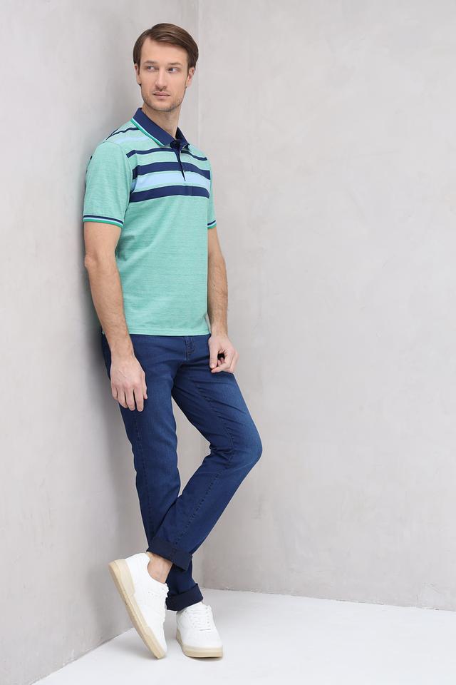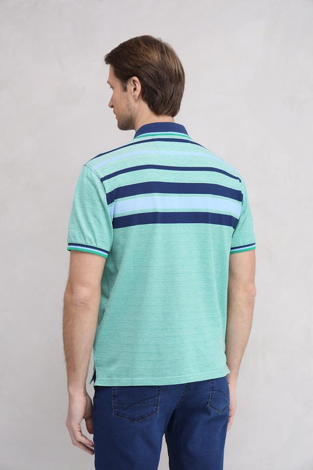 Это мужское поло от Monte Carlo выполнено в мятном цвете и украшено горизонтальными полосами синего и голубого оттенков. Классический крой и воротник-поло делают эту модель универсальной и подходящей для различных ситуаций.