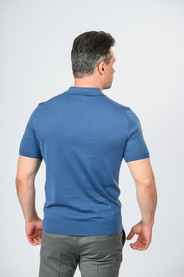 Поло имеет классический крой с короткими рукавами и воротником-поло с тремя пуговицами. Текстура ткани – мелкая вязка, что придает изделию элегантный вид. Данная модель идеально подойдет для повседневной носки, а также для создания более формальных образов в сочетании с брюками или шортами.