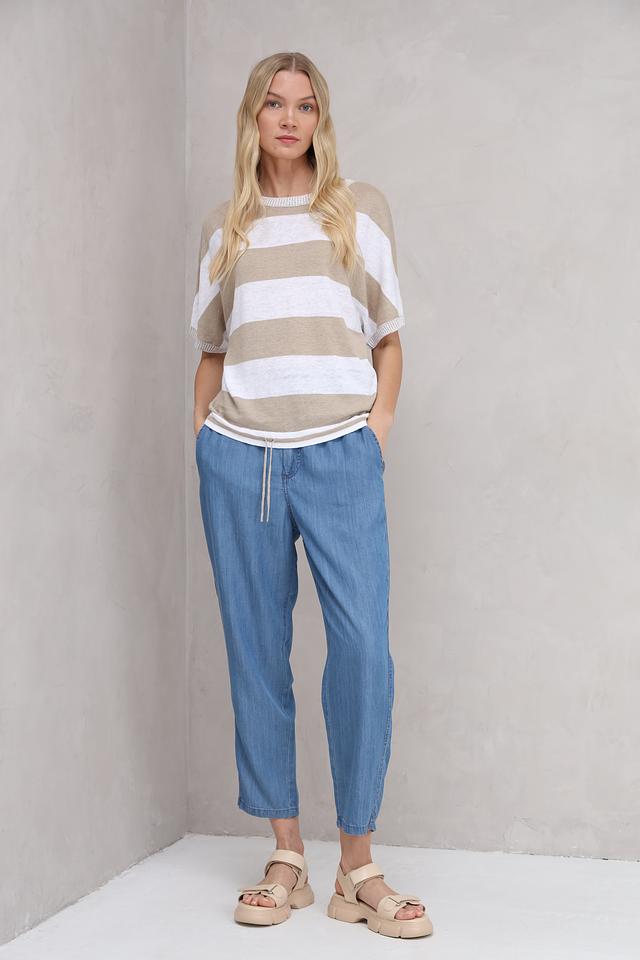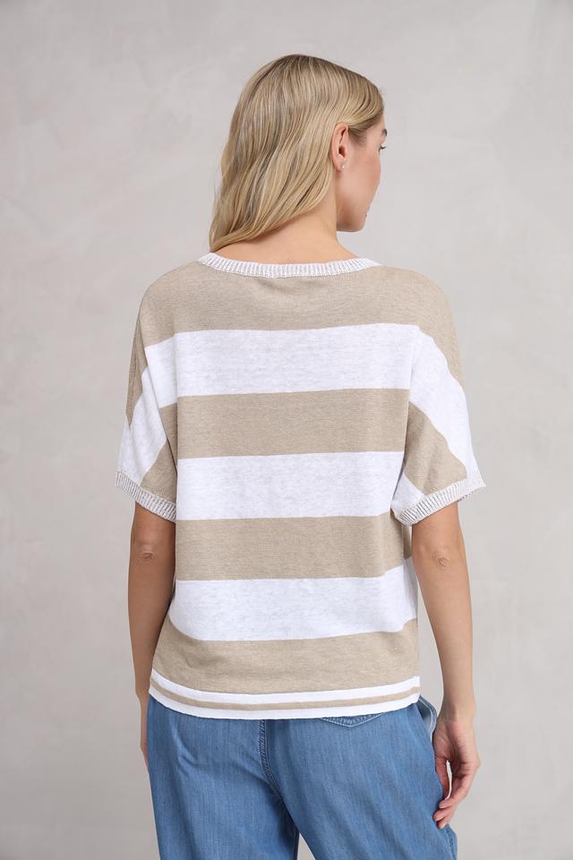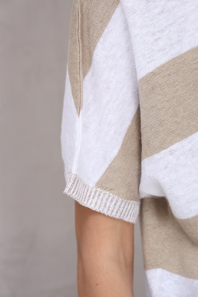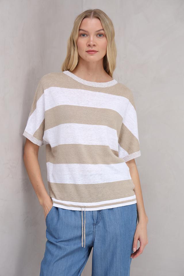 Женский пуловер Oui бежевого цвета с полоской – это стильное и комфортное решение для повседневного гардероба. Модель выполнена из натурального льна, что обеспечивает приятные ощущения и воздухопроницаемость. Короткий рукав делает этот пуловер идеальным для теплой погоды. Состав: лен 100%
