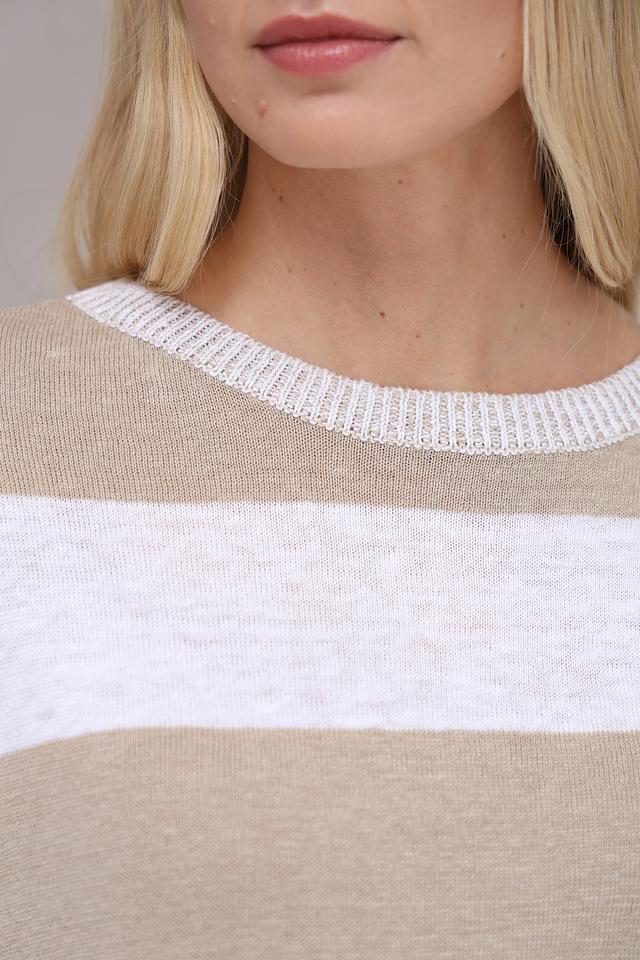 Пуловер Oui в полоску бежевый
