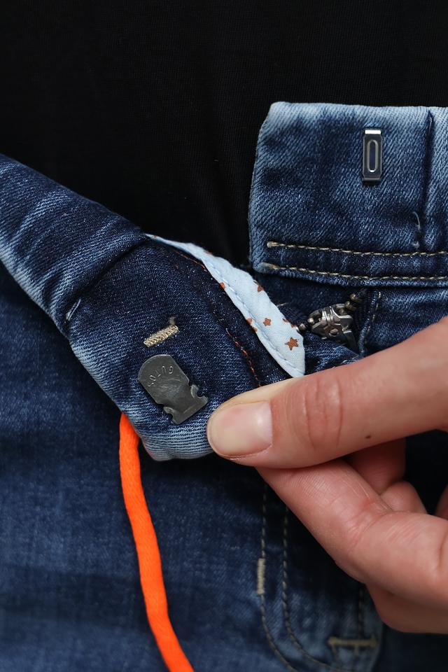 Джинсы имеют слегка зауженный крой и укороченную длину, что придает им современный вид. Декоративные потертости и эффект "варки" добавляют образу непринужденности. На заднем кармане расположена оригинальная вышивка оранжевого цвета, которая подчеркивает индивидуальность модели.