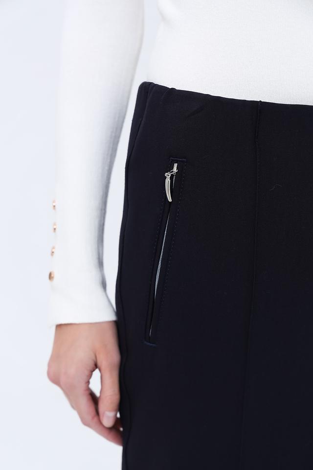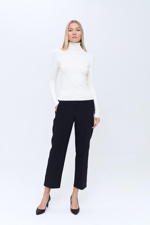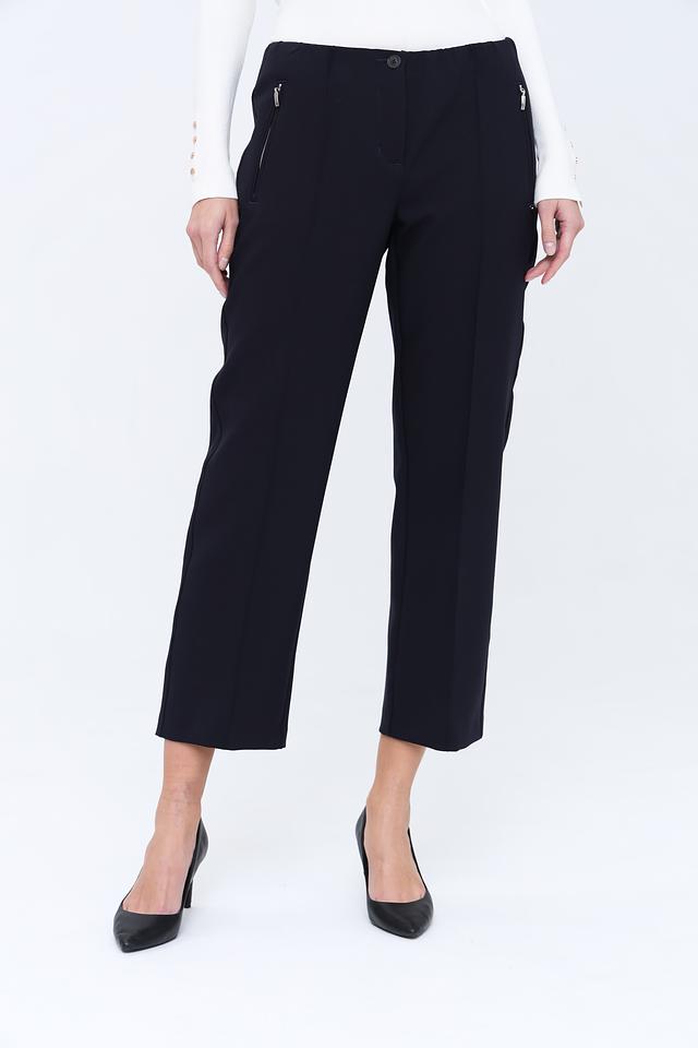Дополнительные детали, такие как аккуратные складки и молнии на карманах, придают брюкам особый шарм и элегантность. Они идеально сочетаются с блузками, рубашками, топами и жакетами, позволяя создавать стильные и завершенные образы. Задние карманы накладные с декоративной отделкой.