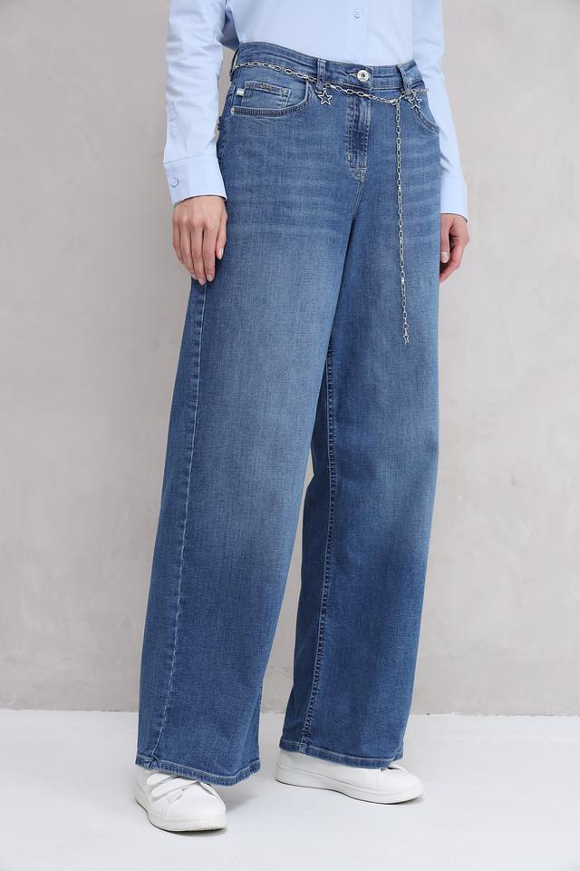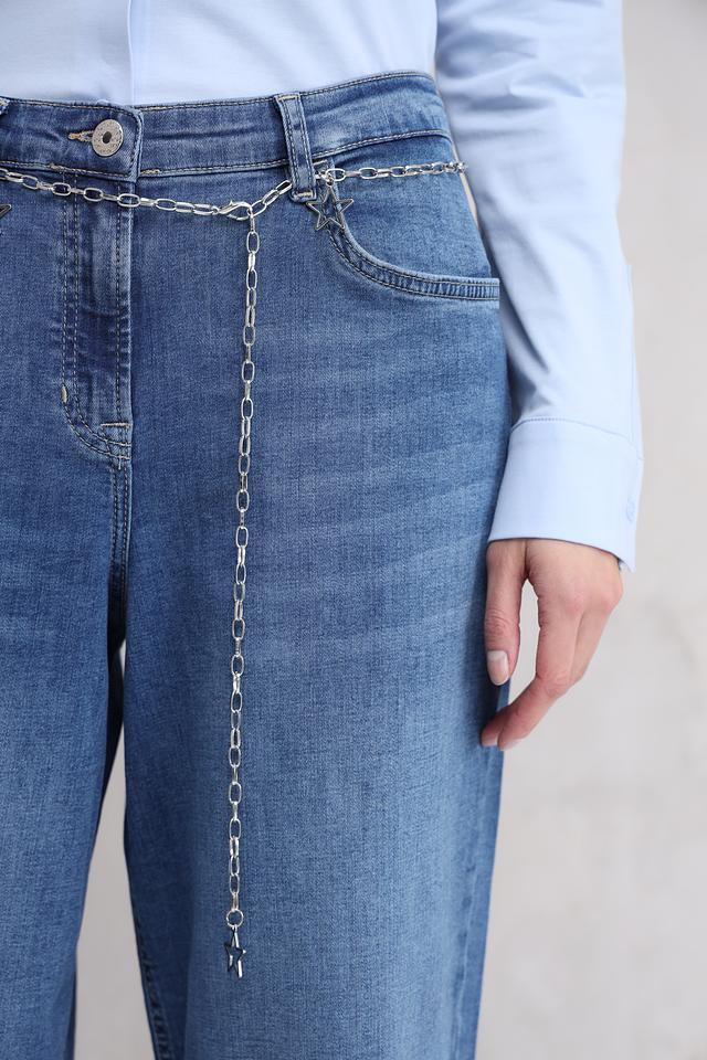 Особенностью данной модели является декоративная цепочка на поясе, которая добавляет образу изысканности и индивидуальности. Джинсы идеально подойдут для создания как повседневных, так и более нарядных образов. Классический пятикарманный крой и аккуратная фурнитура завершают стильный дизайн.