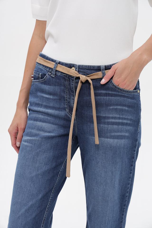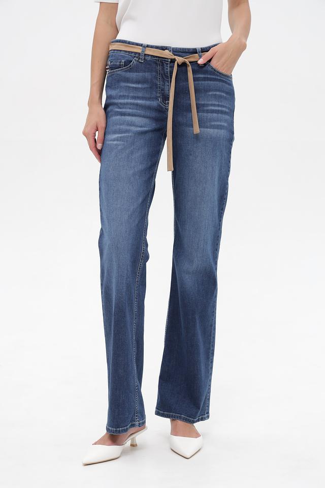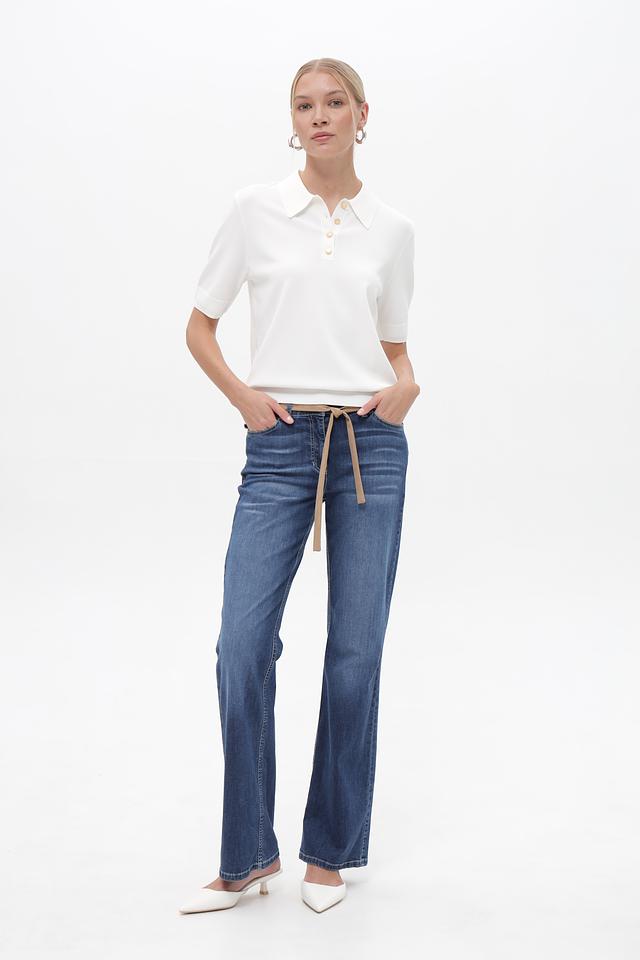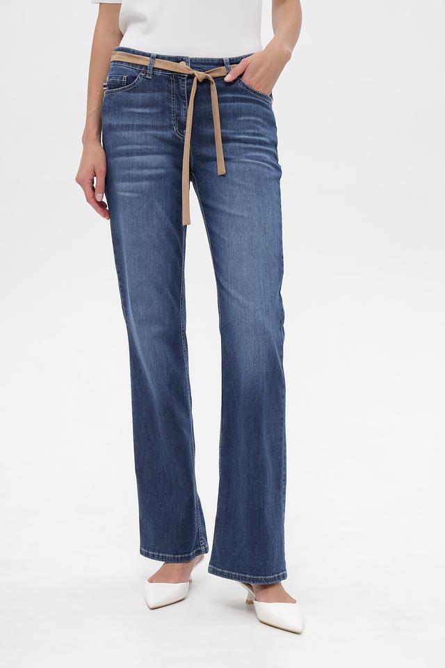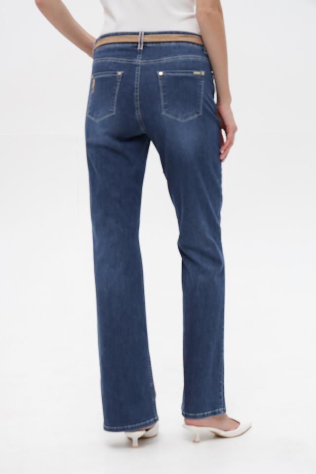 Джинсы имеют прямой крой, который подходит для любого типа фигуры. Застежка на молнию и пуговицу. Пояс в комплекте позволяет подчеркнуть талию и создать более женственный силуэт. Эффект потертости придает изделию стильный и современный вид.