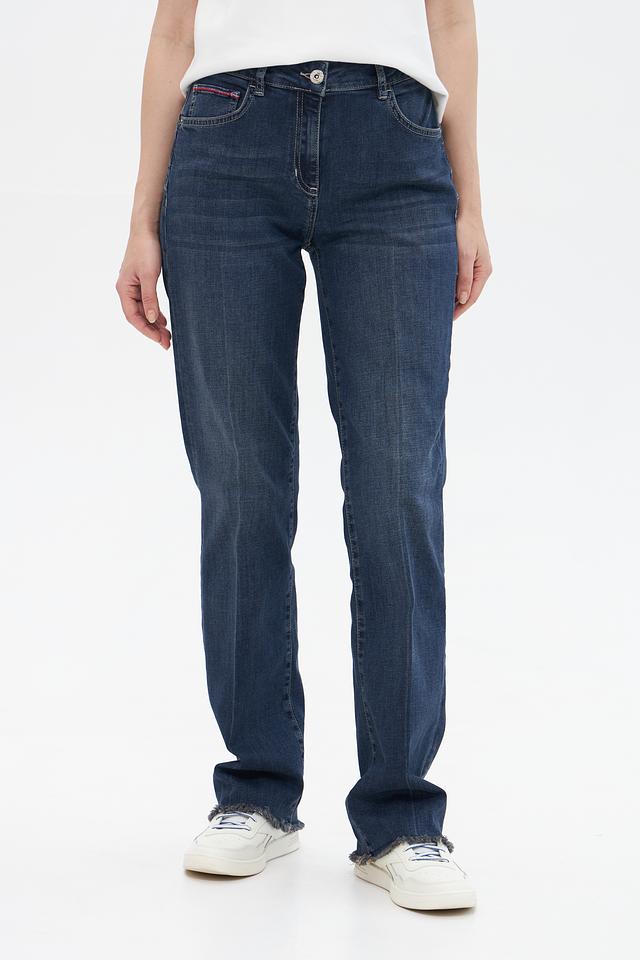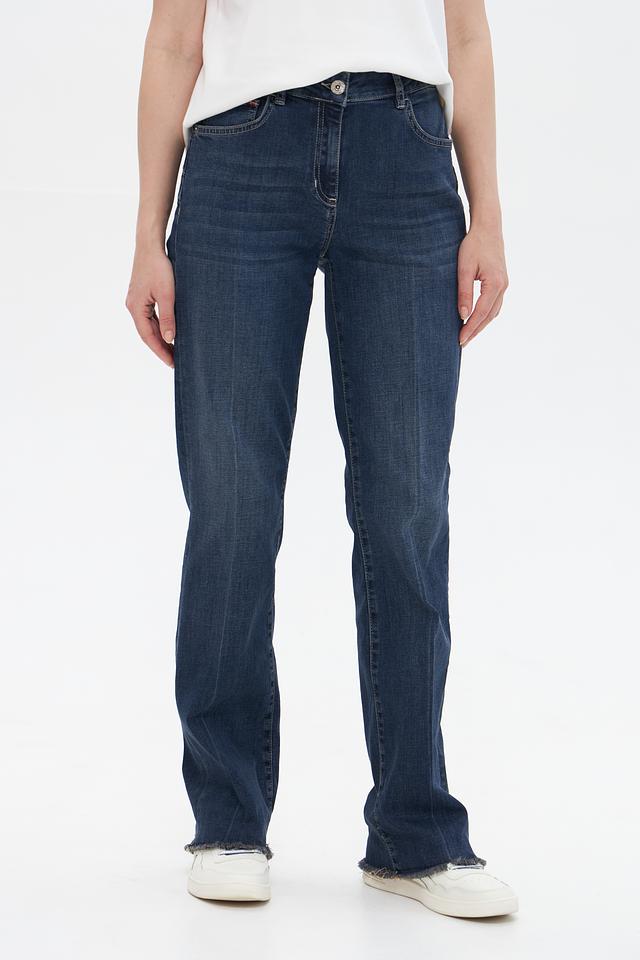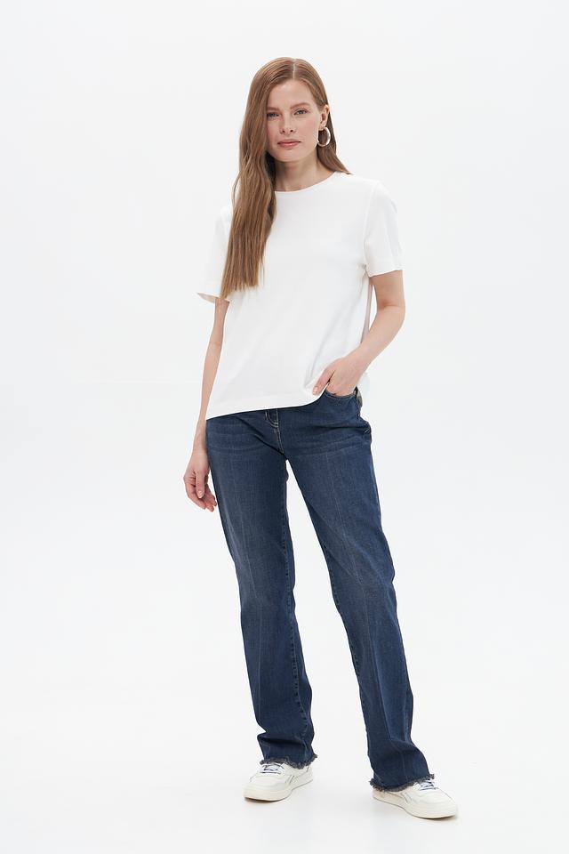 Классическая модель с высокой посадкой подчеркивает талию и создает элегантный силуэт. Пятикарманный крой – это практичное и универсальное решение для повседневной носки. Эффект потертости придает джинсам винтажный вид и делает образ более непринужденным.