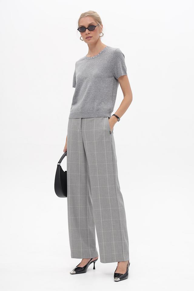 Представляем элегантные брюки от бренда Ppep, выполненные в классическую серую клетку. Эта модель станет отличным дополнением к вашему гардеробу, позволяя создавать разнообразные образы – от деловых до повседневных.