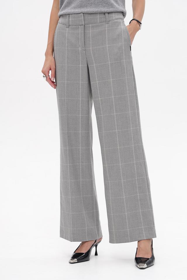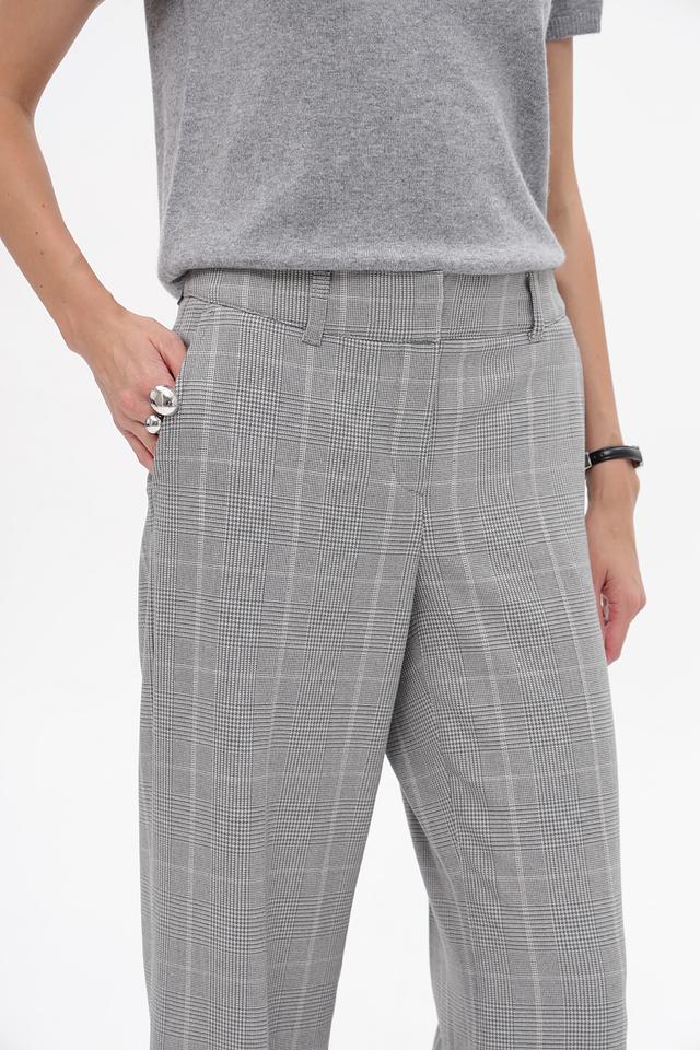 Стильные брюки от Ppep серого цвета в классическую клетку. Изготовлены из смесовой ткани с добавлением вискозы для комфорта. Идеальный выбор для создания элегантного образа. Состав: полиэстер 62%, вискоза 33%, эластан 5%
