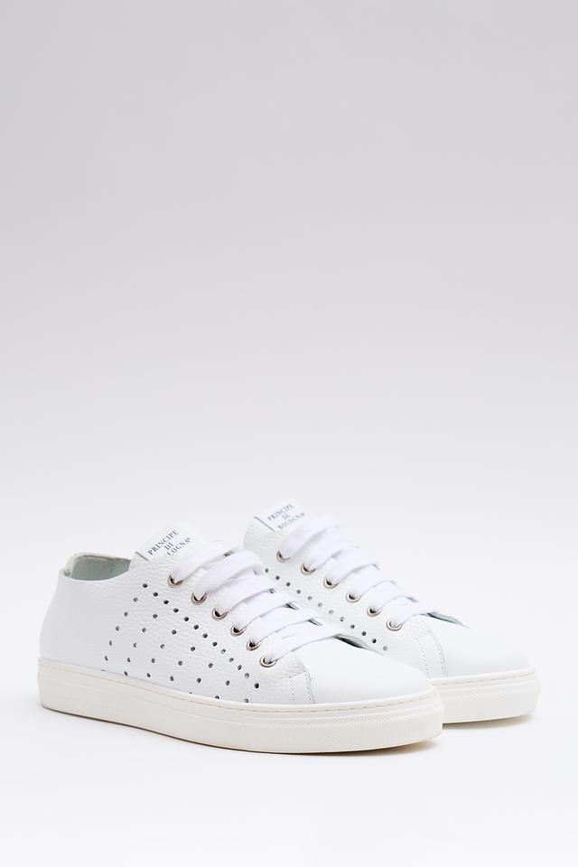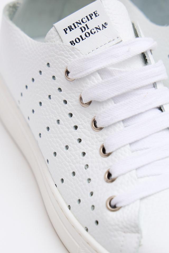 Белые кеды Principe Di Bologna — это стильная и удобная обувь для повседневной носки. Модель выполнена из натуральной кожи с декоративной перфорацией и имеет классическую шнуровку. Состав: кожа 100%, Состав_подкладка кожа 100%, Состав_низ резина 100%