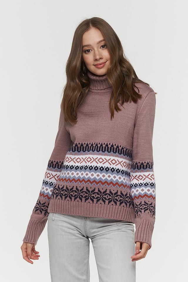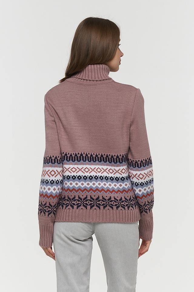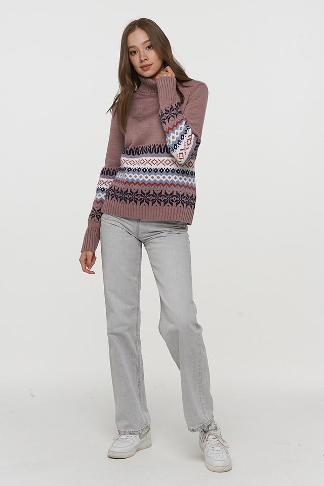 Пуловер BE YOU пудрового цвета с ярким жаккардовым узором — отличный выбор для создания уютного и стильного образа. Изготовлен из мягкой шерсти и пана для комфорта и тепла. Состав: пан 70%, шерсть 30%