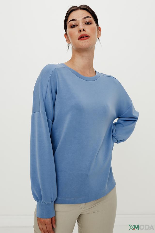 Женский пуловер Betty and Co голубого цвета – это стильная и комфортная модель оверсайз кроя с рукавами-фонариками. Изготовлен из мягкого и приятного к телу сочетания полиэстера, модала и эластана, обеспечивающего удобную посадку. Состав: полиэстер 51%, модал 42%, эластан 7%