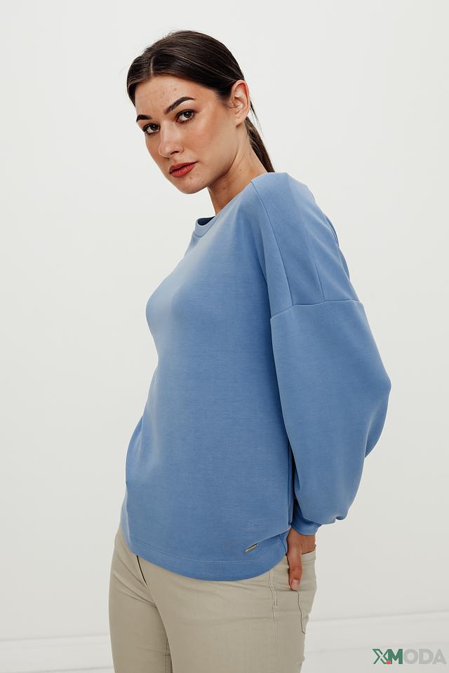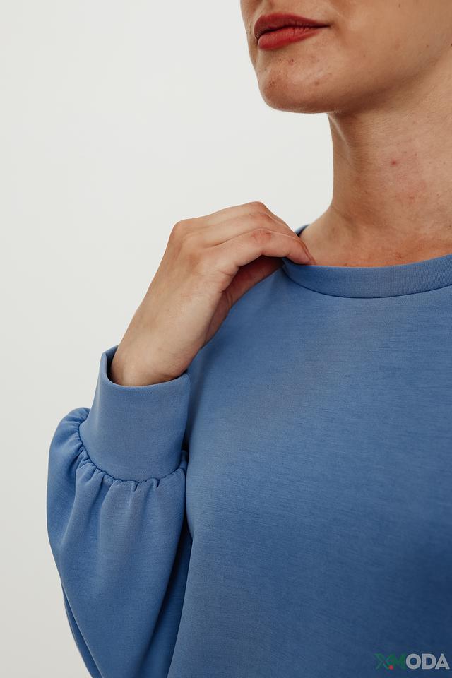 Особенностью данной модели являются рукава-фонарики, которые придают образу женственность и лёгкость. Пуловер имеет круглый вырез горловины и эластичные манжеты на рукавах, обеспечивающие плотное прилегание.