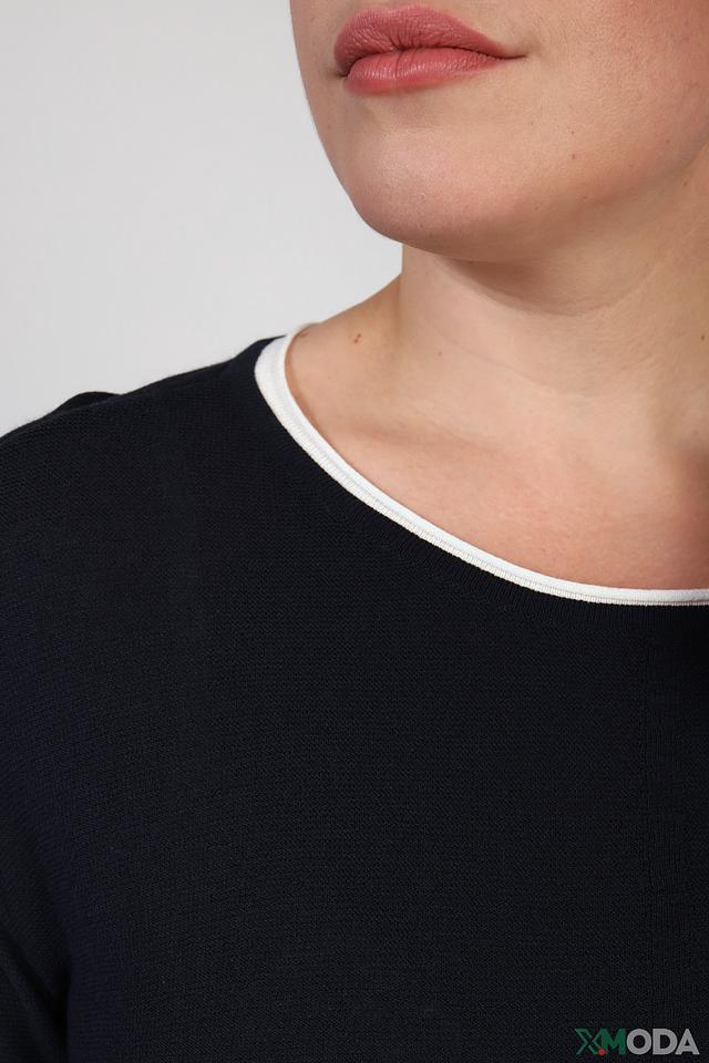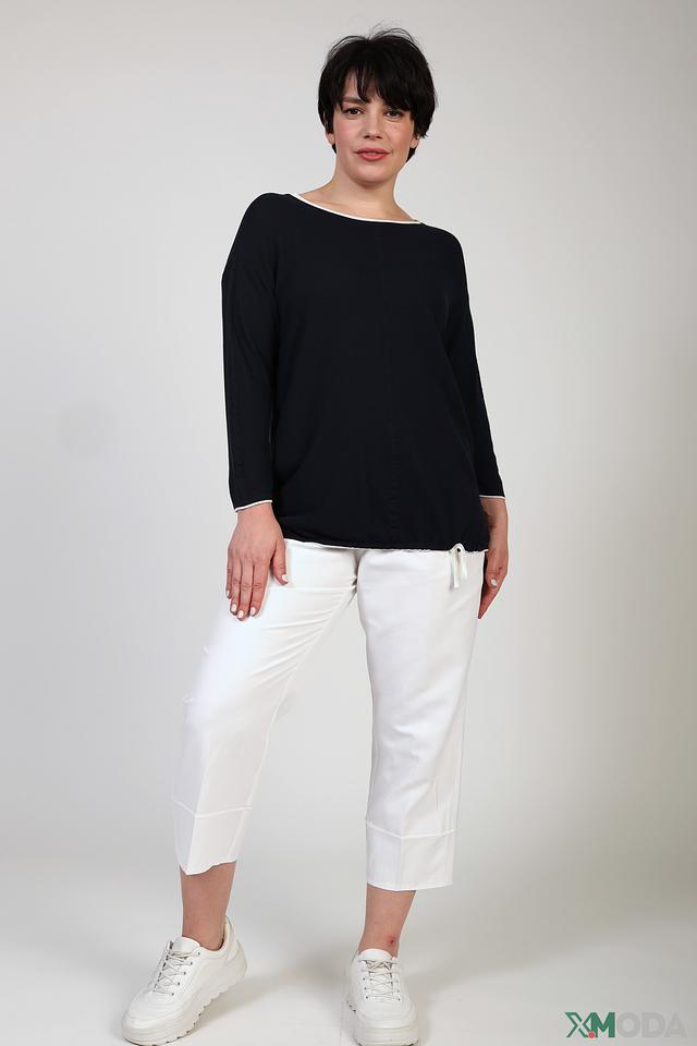 Особенностью модели является аккуратная белая отделка горловины и рукавов, которая добавляет изысканности и подчеркивает стиль. Пуловер изготовлен из высококачественной вискозы с добавлением полиэстера, что обеспечивает мягкость, комфорт и долговечность изделия.