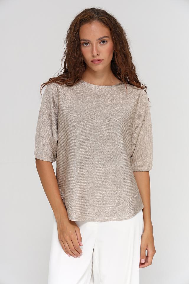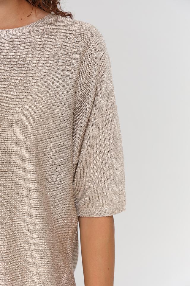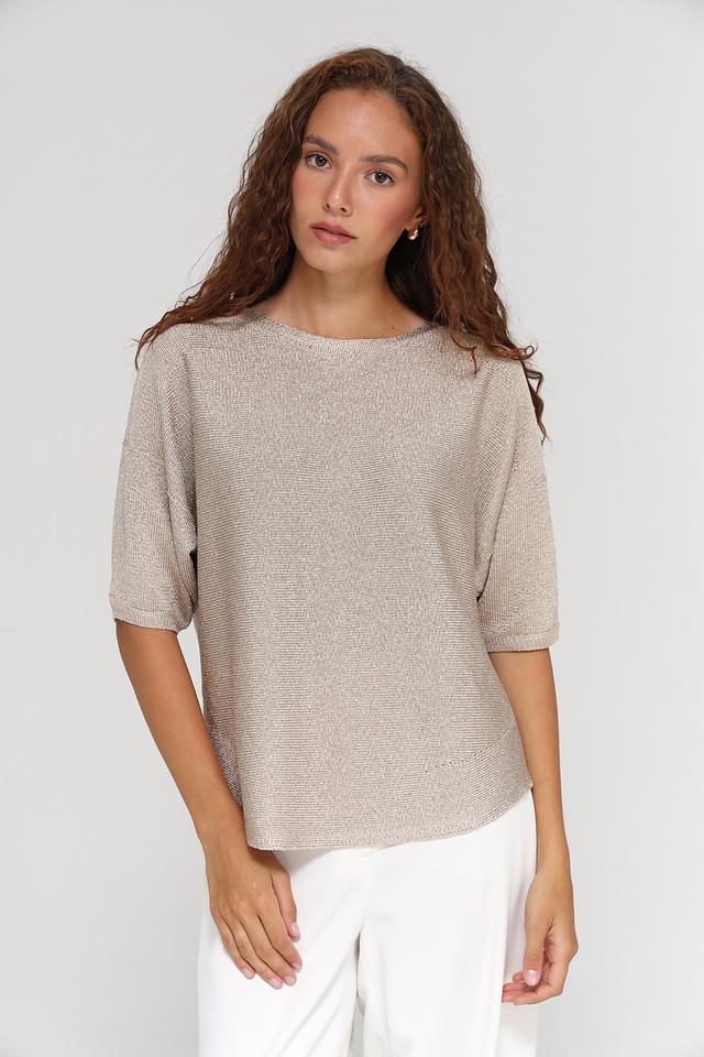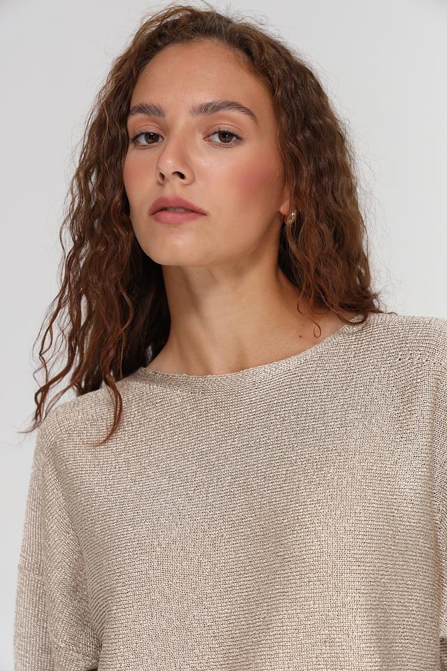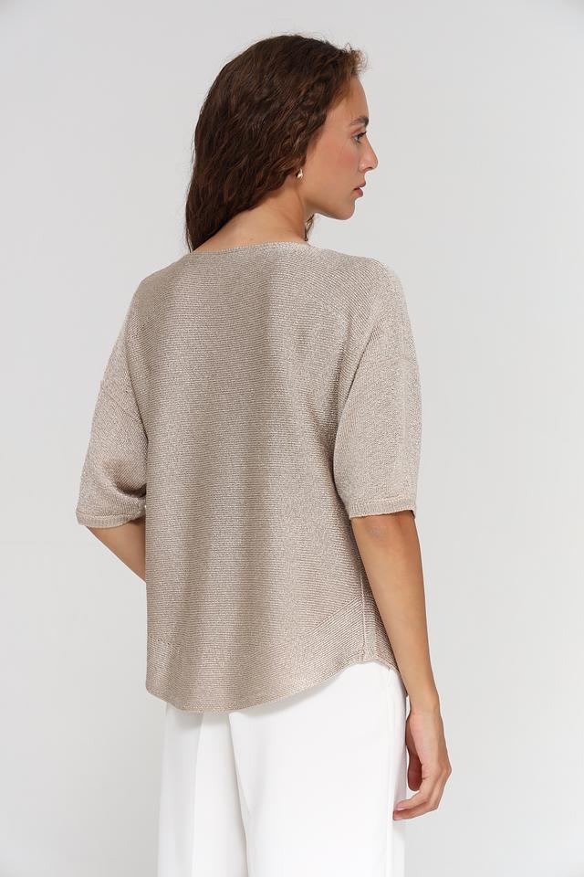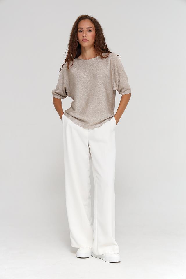 Округлый вырез горловины придает модели классический вид. Текстура ткани с легким блеском добавляет изысканности. Пуловер имеет свободный крой, который обеспечивает комфорт и свободу движений.
