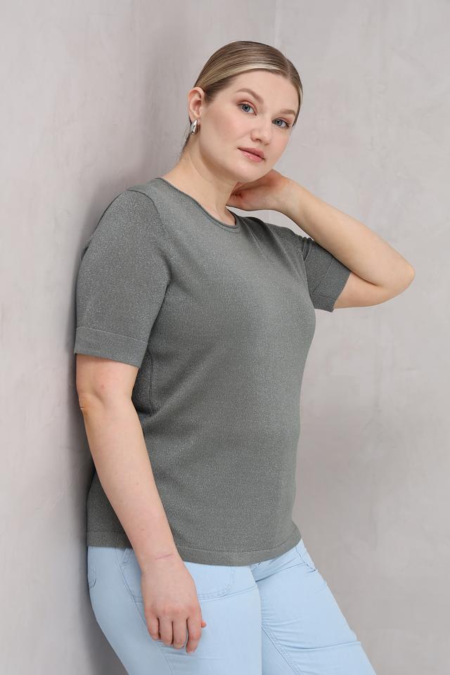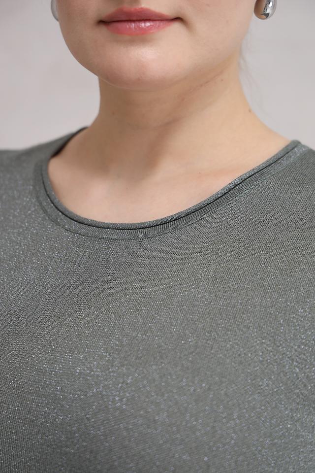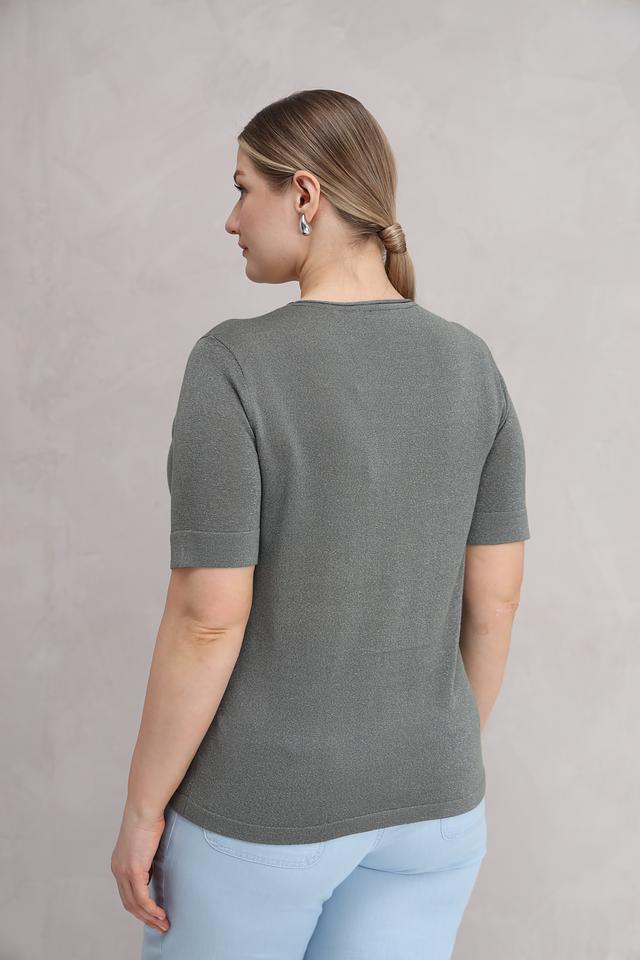 Женский пуловер Bianca хаки цвета с добавлением металлизированной нити станет стильным дополнением к вашему гардеробу. Модель с коротким рукавом и круглым вырезом выполнена из мягкой вискозы. Состав: вискоза 80%, метализ.нить 20%