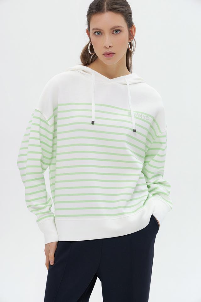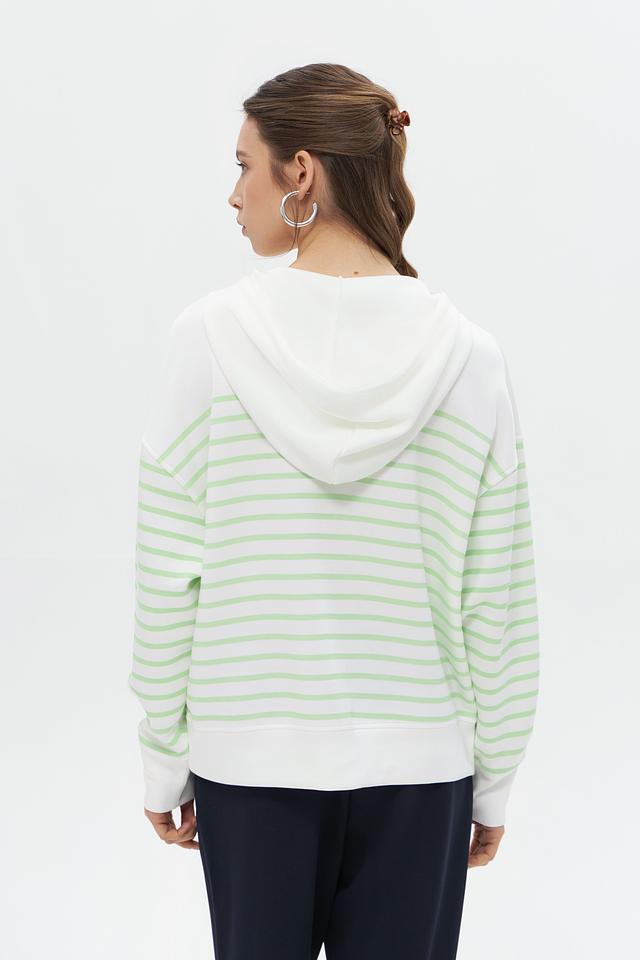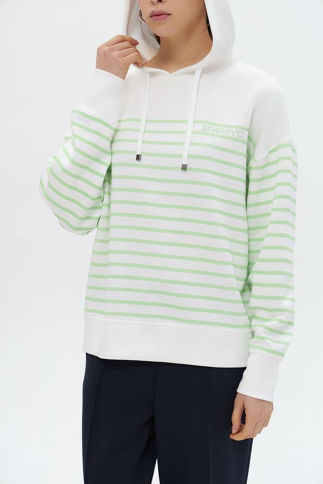 Женский пуловер Broadway белого цвета с зелёными полосками и капюшоном станет отличным дополнением к вашему гардеробу. Модель выполнена из мягкого и приятного к телу трикотажа, обеспечивающего комфорт в течение дня. Состав: полиэстер 49%, вискоза 43%, эластан 8%