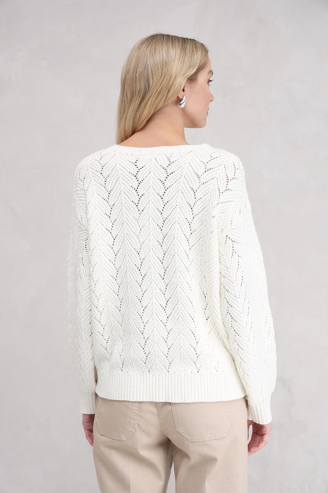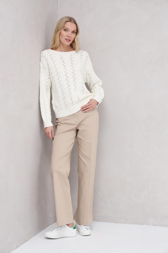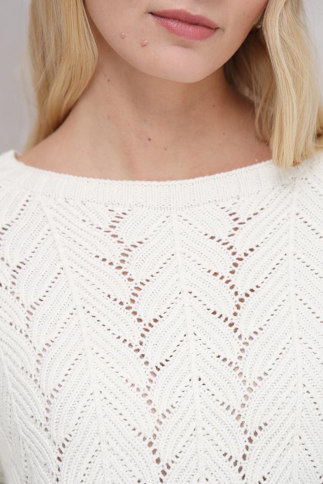 Женский пуловер Broadway молочного цвета выполнен из мягкого трикотажа с ажурным узором. Модель имеет округлый вырез горловины и длинные рукава, идеально подходит для создания уютных и стильных образов. Состав: хлопок 60%, акрил 40%