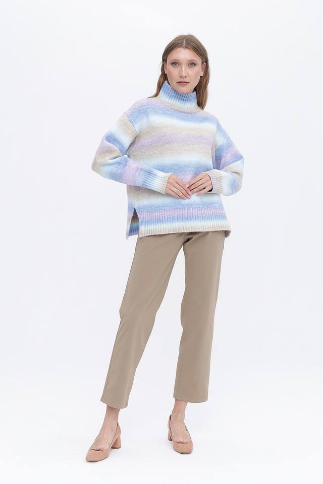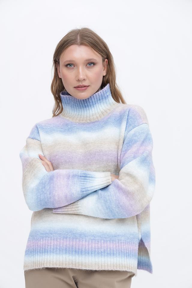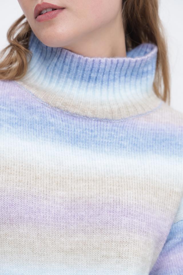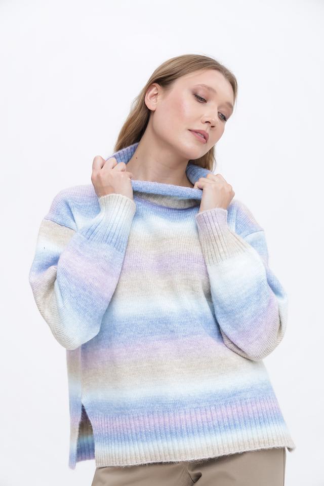 Женский пуловер Broadway в полосатую расцветку голубого, розового и бежевого цветов станет отличным дополнением к вашему гардеробу. Модель выполнена из мягкого и приятного к телу сочетания полиэстера и акрила, имеет удобный высокий воротник и свободный крой. Состав: полиэстер 70%, акрил 30%