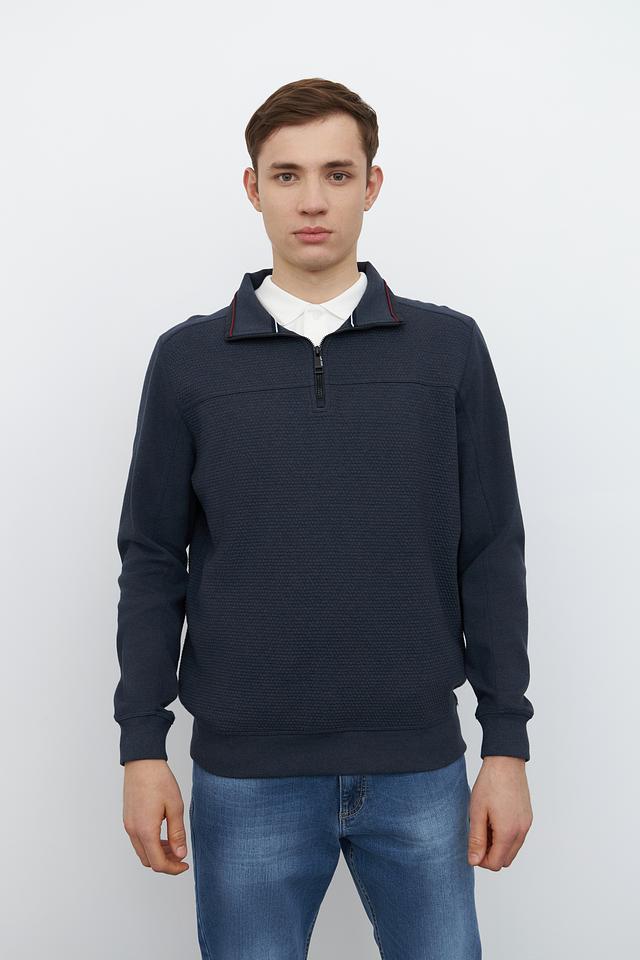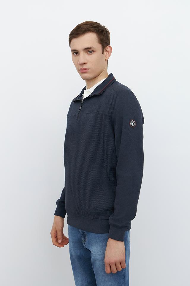 Мужской джемпер Casa Moda темно-синего цвета с короткой молнией и текстурной вязкой. Модель дополнена декоративной отделкой на воротнике и нашивкой на рукаве, что придает ей стильный и современный вид. Состав: хлопок 62%, полиэстер 35%, эластан 3%