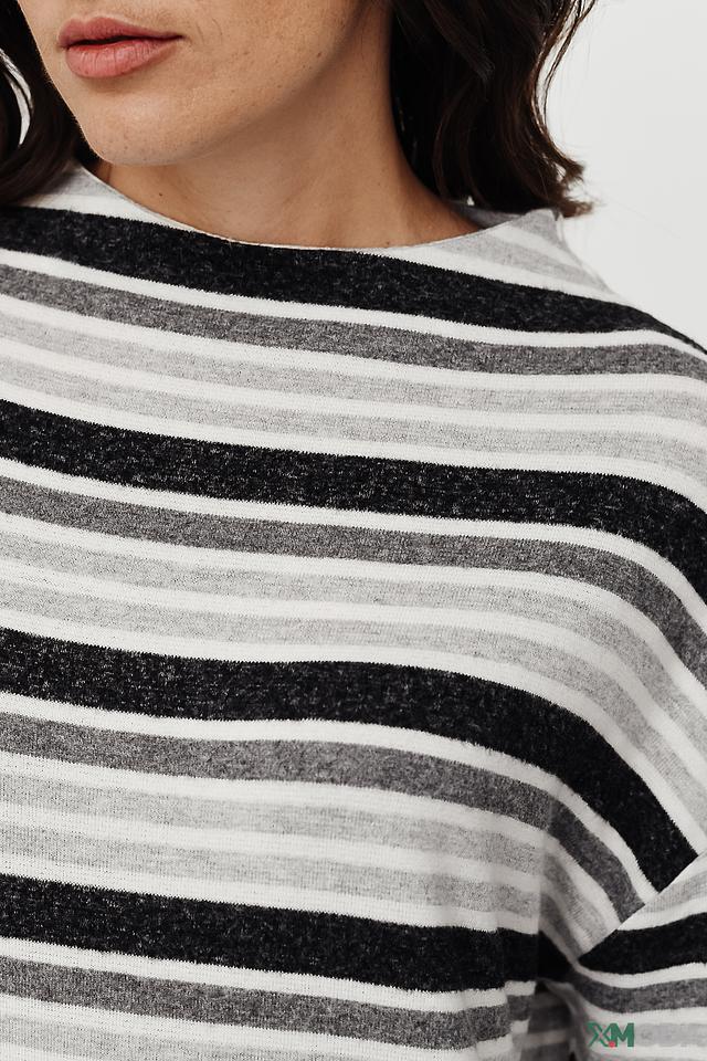 Этот стильный пуловер от Gerry Weber идеально подходит для создания повседневных образов. Пуловер выполнен в горизонтальную полоску, сочетающую в себе оттенки серого и белого, что придает ему современный и универсальный вид.