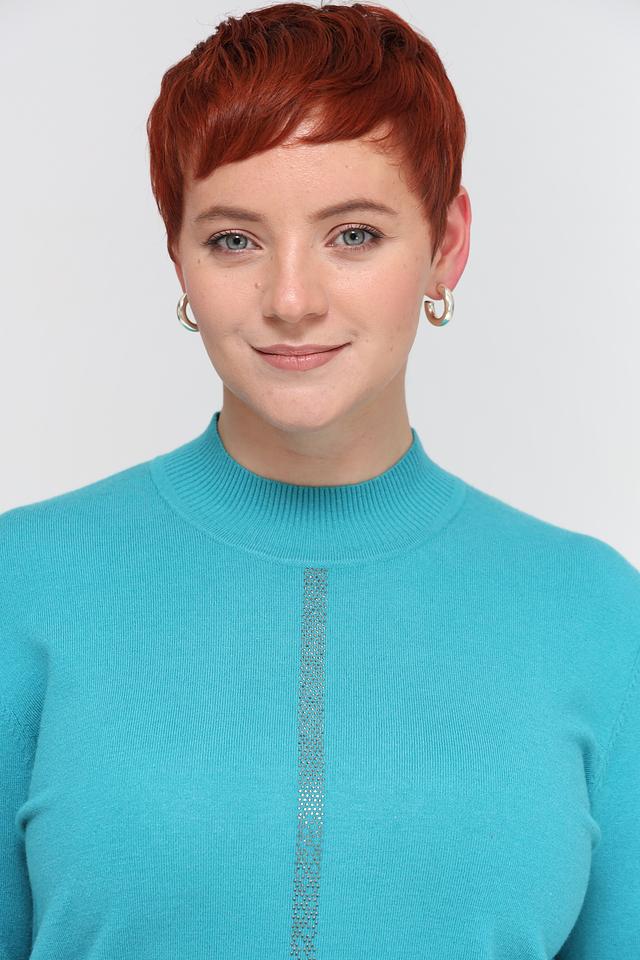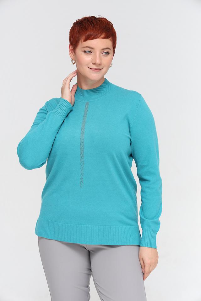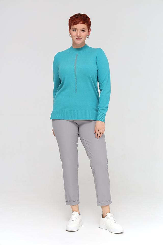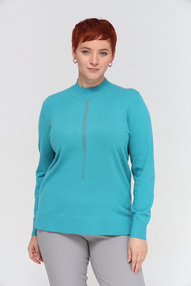 Женский пуловер Barbara Lebek бирюзового цвета с декоративной вертикальной вставкой из страз. Модель выполнена из мягкого трикотажа с высоким горлом и длинными рукавами, идеально подходит для создания стильного и комфортного образа. Состав: полиакрил 30%, полиэстер 29%, модал 21%, полиамид 20%
