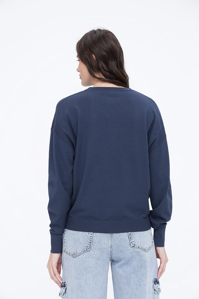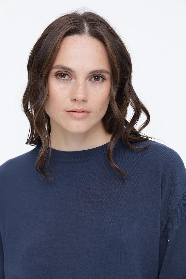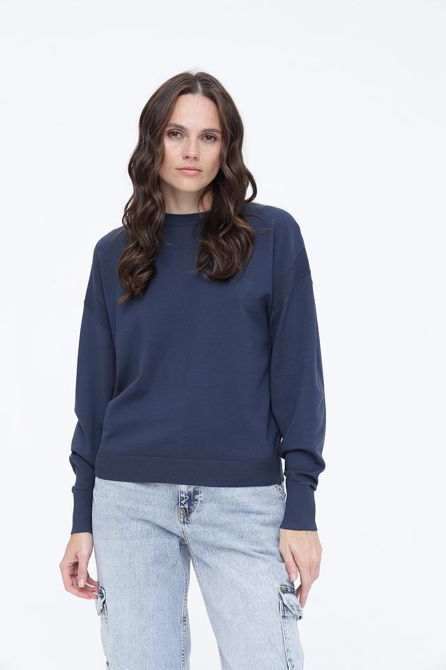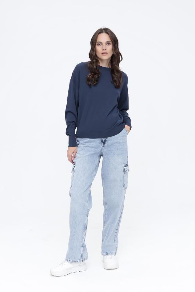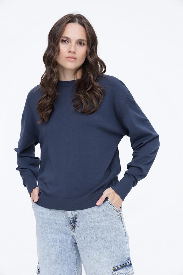 Модель имеет прямой крой и круглый вырез горловины, что делает ее универсальной и подходящей для разных типов фигуры. Пуловер выполнен из приятной на ощупь ткани, состоящей из 72% вискозы и 28% полиэстера. Вискоза обеспечивает мягкость и комфорт, а полиэстер – долговечность и устойчивость к деформации.