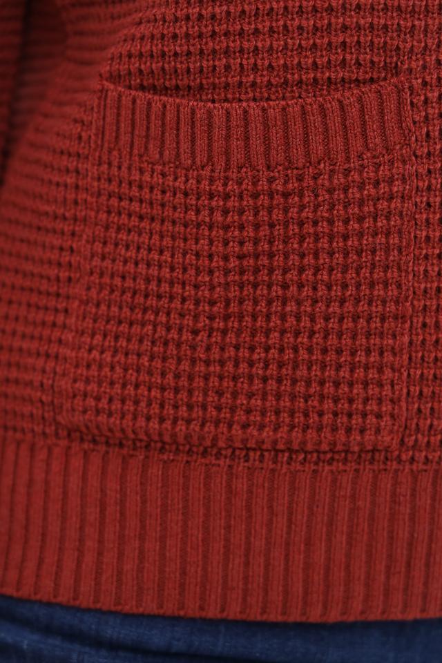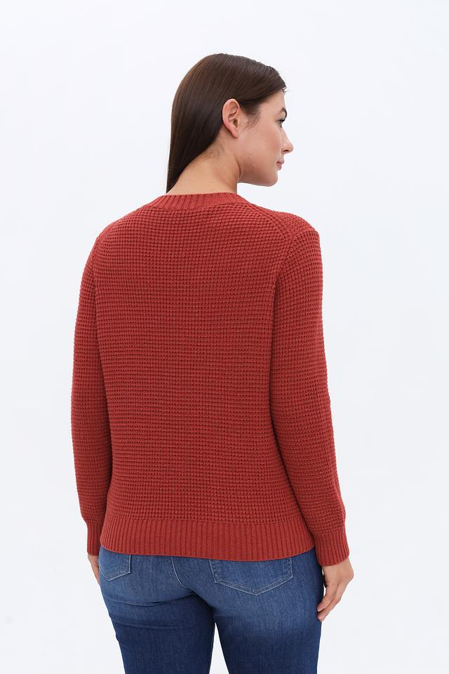 Цвет пуловера – терракотовый, насыщенный и благородный оттенок, который легко сочетается с различными элементами одежды. Этот пуловер идеально подойдет для создания повседневных и более элегантных образов. Он прекрасно сочетается с джинсами, брюками, юбками и аксессуарами.