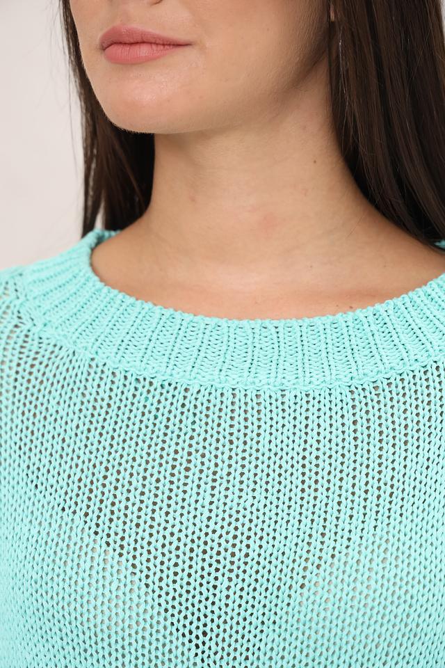 Женский пуловер Monari мятного цвета с коротким рукавом и ажурной вязкой. Модель выполнена из мягкого полиакрила, обеспечивающего комфорт и лёгкость в носке. Идеально дополнит летний гардероб. Состав: полиакрил 100%