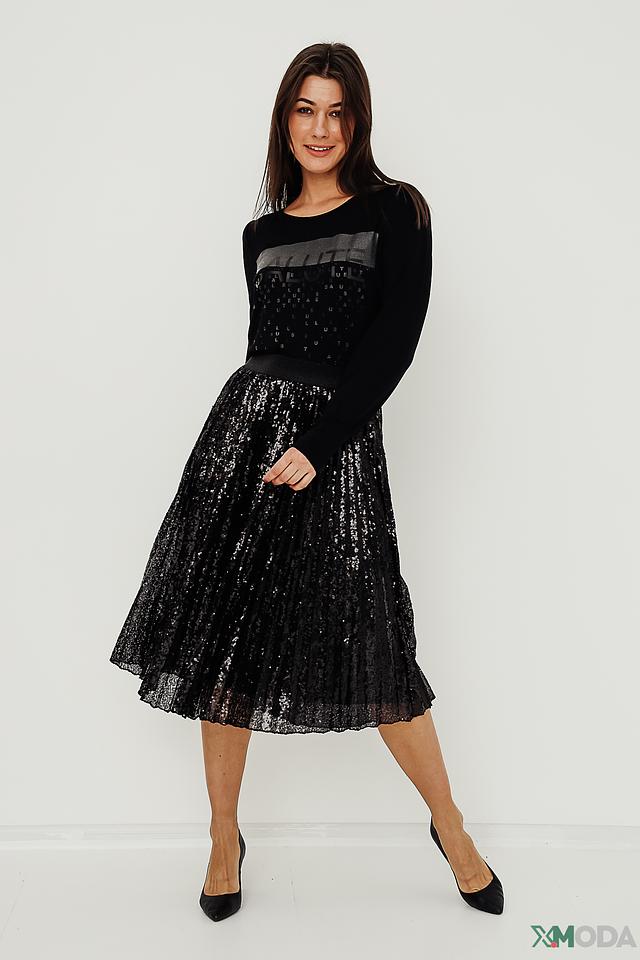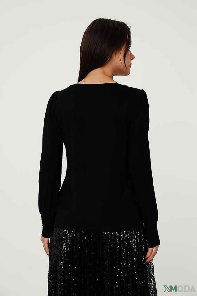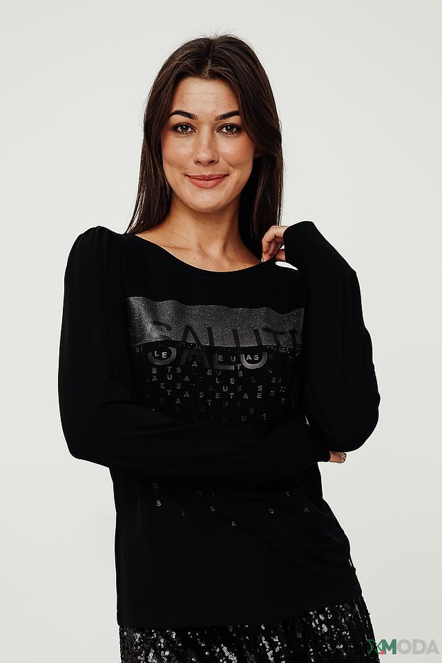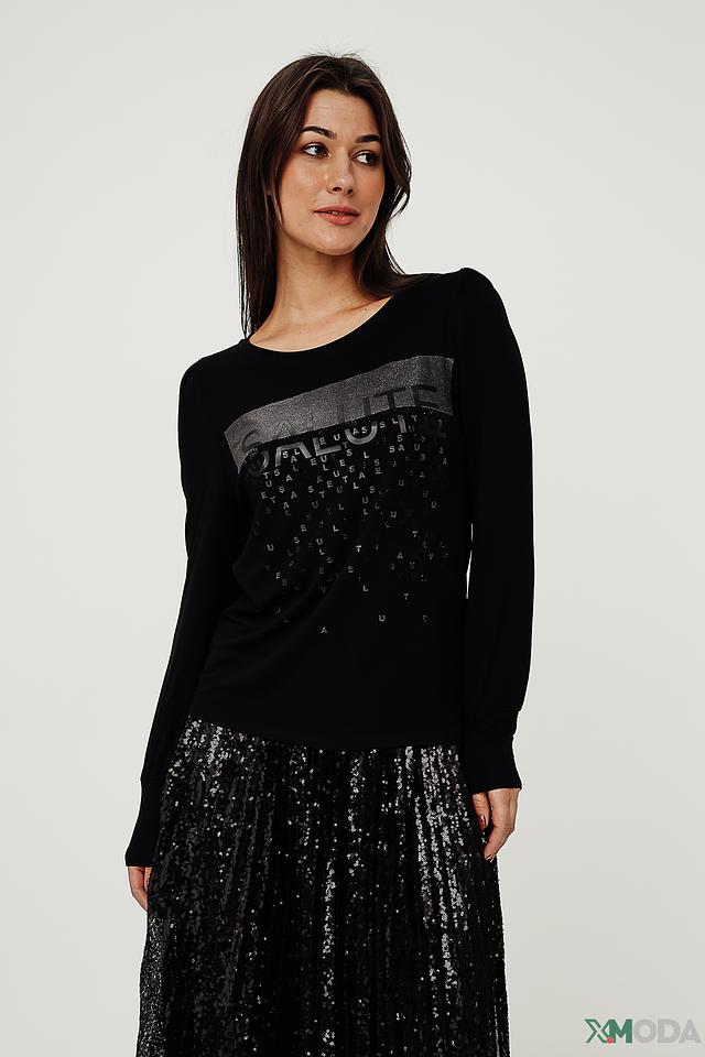 Чёрный пуловер Monari с оригинальным принтом логотипа – стильное и комфортное решение для повседневного образа. Изготовлен из мягкой вискозы с добавлением модала и эластана, обеспечивающих приятные тактильные ощущения и хорошую посадку. Состав: вискоза 45%, модал 45%, эластан 10%