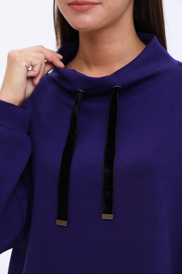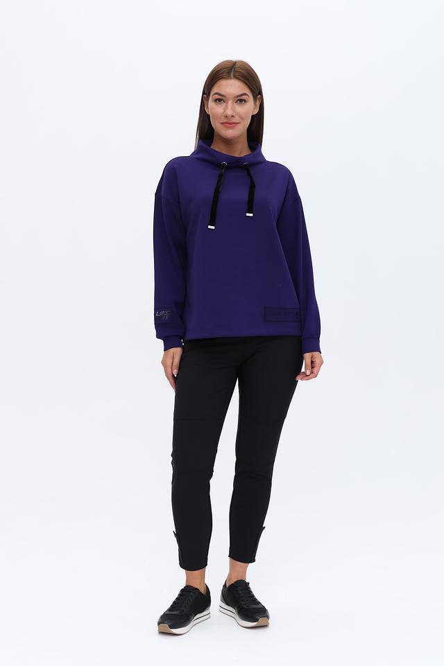 Женский пуловер Monari насыщенного фиолетового цвета с удобным капюшоном на шнурках. Модель свободного кроя с декоративными нашивками добавит образу непринужденности и стиля. Состав: полиэстер 55%, вискоза 38%, эластан 7%