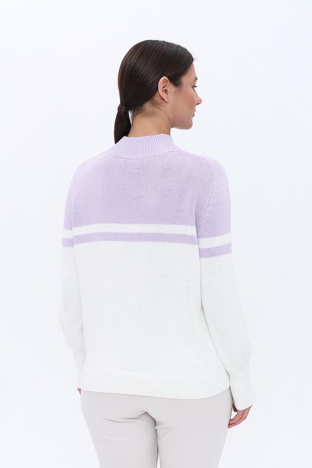 Этот стильный пуловер от Monari станет прекрасным дополнением к вашему гардеробу. Модель сочетает в себе лавандовый и белый цвета, создавая нежный и элегантный образ.
