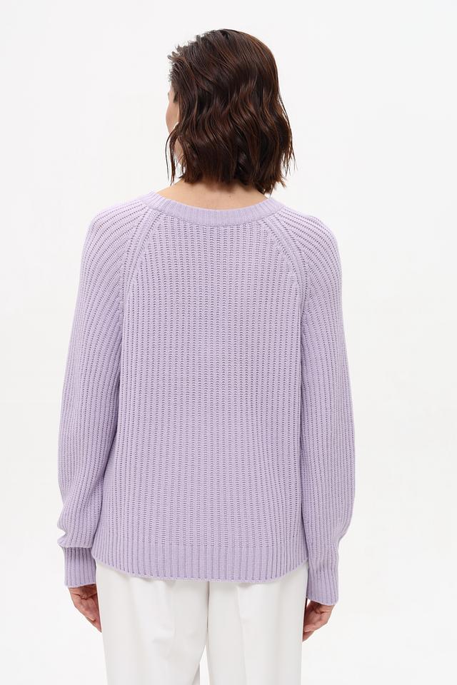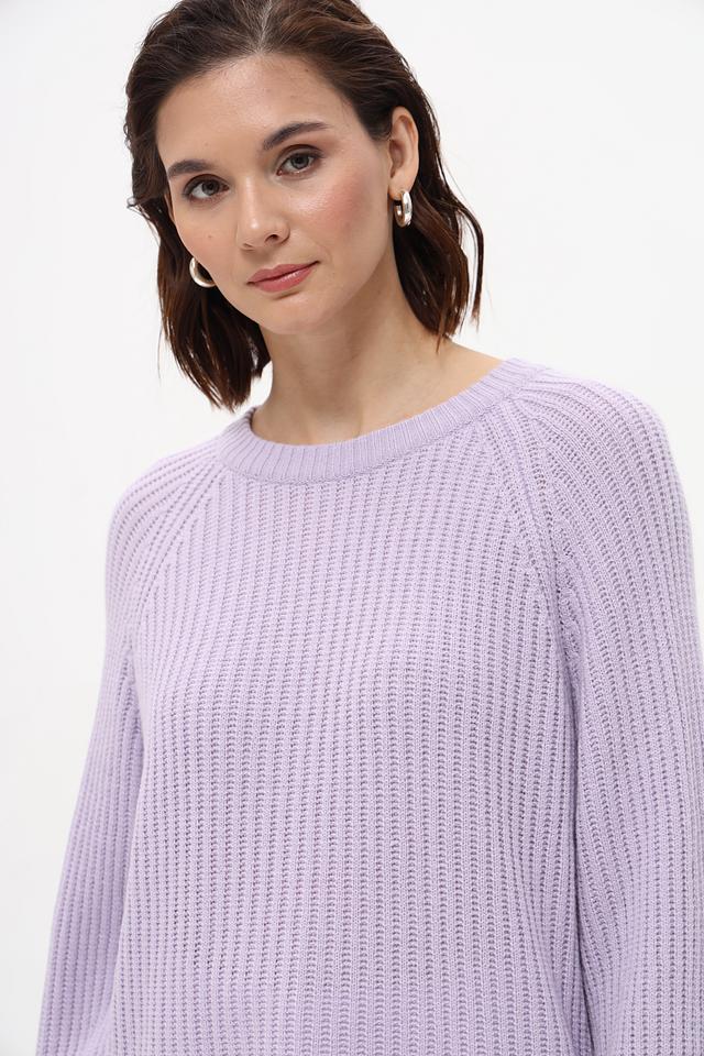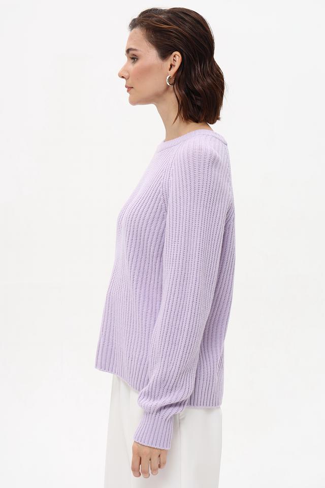 Нежный лавандовый цвет пуловера легко сочетается с другими элементами гардероба, позволяя создавать разнообразные образы – от повседневных до более элегантных. Состав: 50% шерсть, 50% полиакрил.
