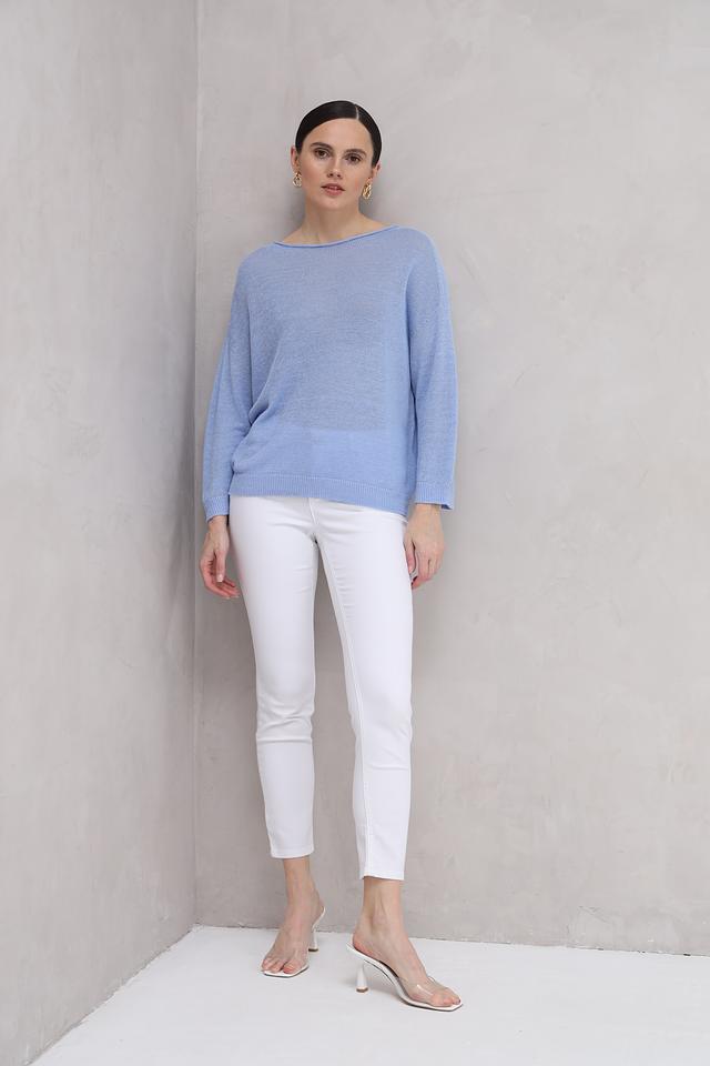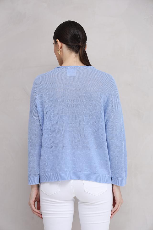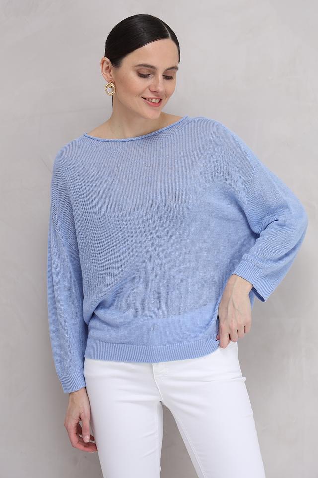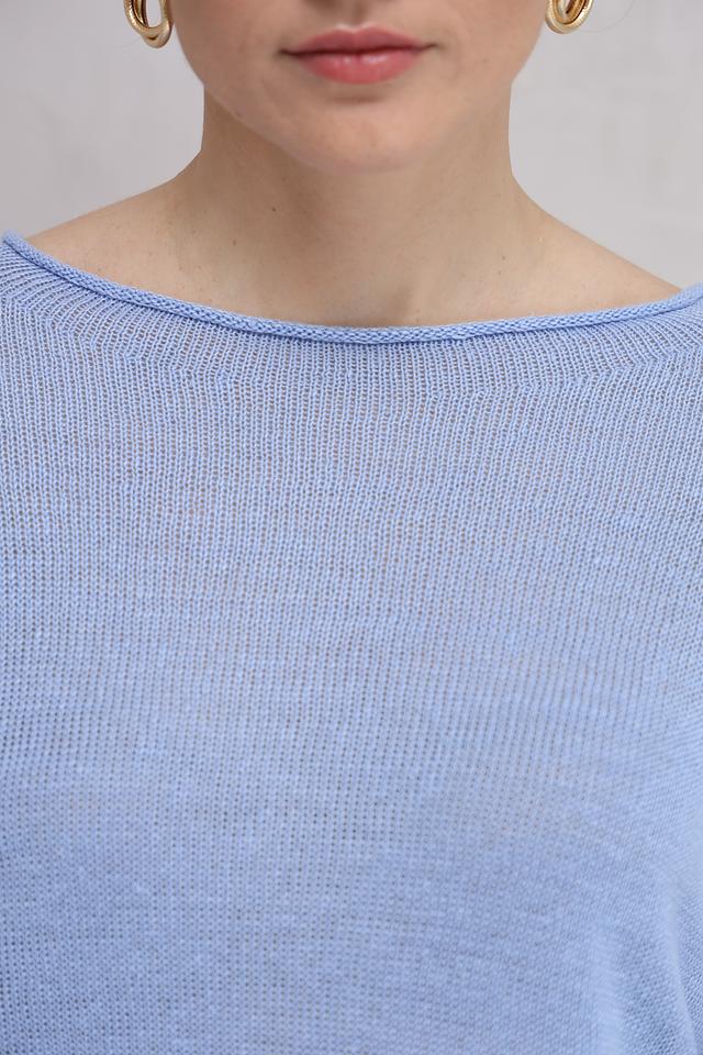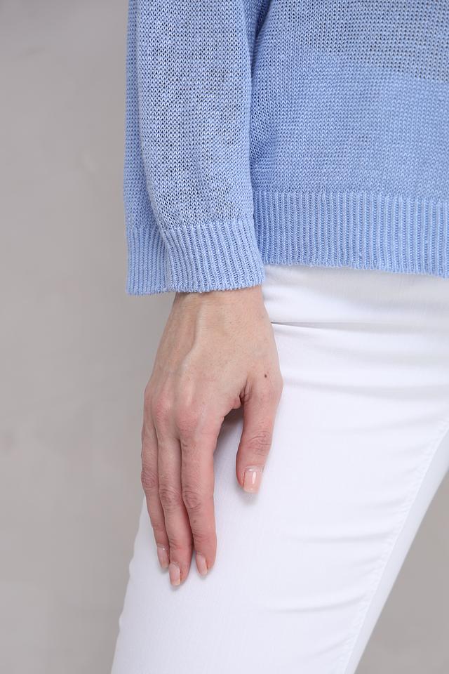 Нежный голубой цвет пуловера легко сочетается с различными элементами одежды, позволяя создавать разнообразные стильные образы. Этот пуловер идеально подойдет для повседневной носки, прогулок и встреч с друзьями. Состав: 100% лен.