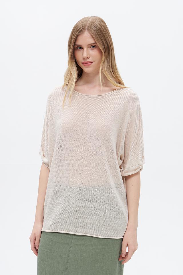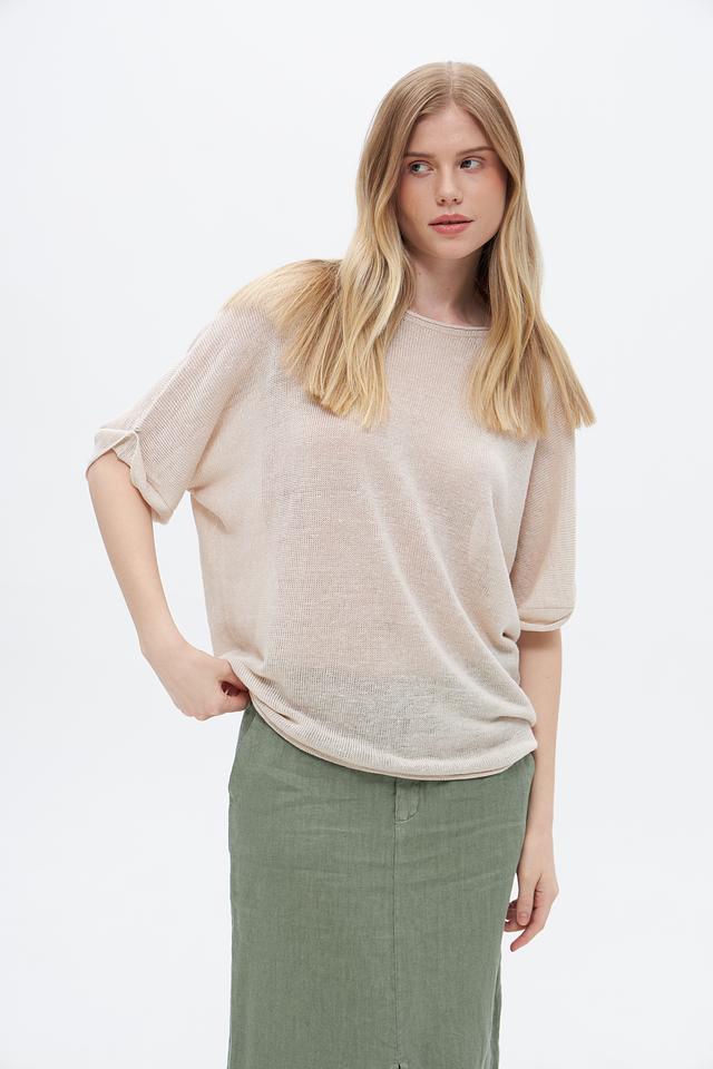 Бежевый пуловер от Oui из 100% льна – лёгкая и дышащая модель с короткими рукавами. Идеальный выбор для создания комфортных летних образов. Состав: лен 100%