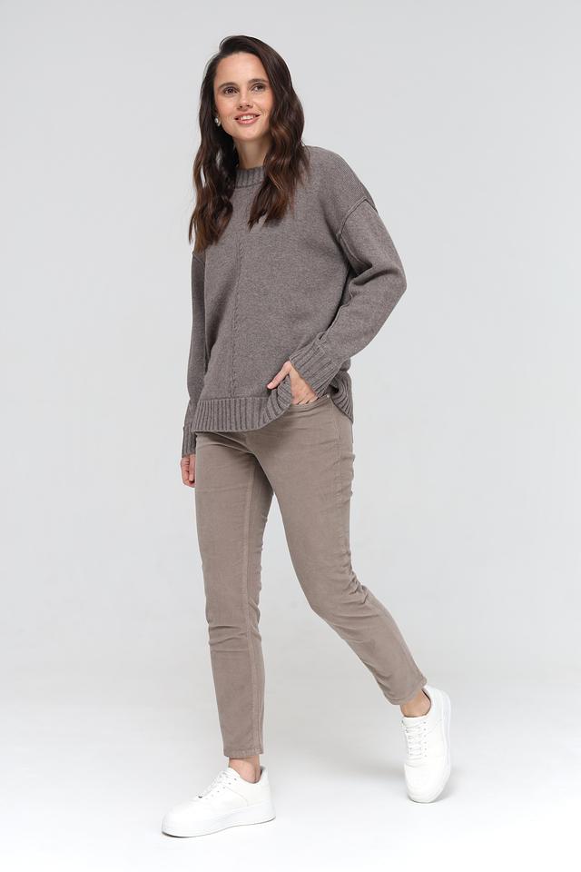 Особенностью данного пуловера является оригинальная текстура вязки и вязаный манжет. Декоративная вставка с косами придает изделию особый шарм. Пуловер идеально подойдет для создания повседневных образов.