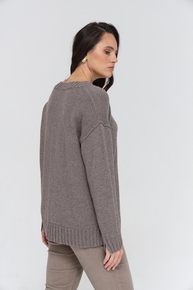 Благодаря своему составу, пуловер хорошо сохраняет форму и не требует особого ухода.