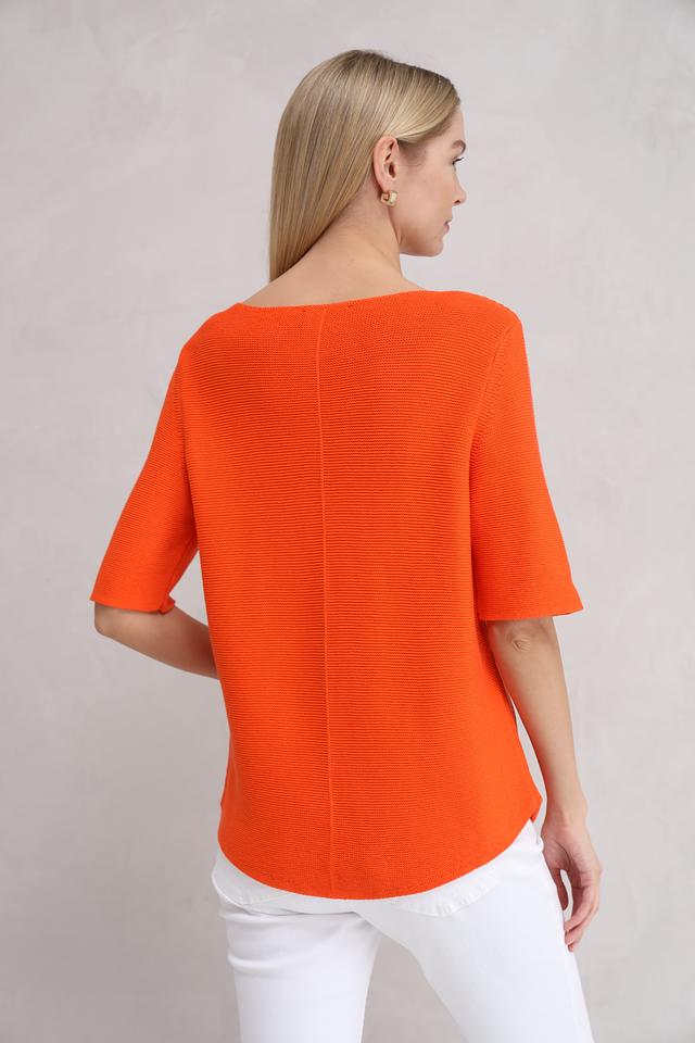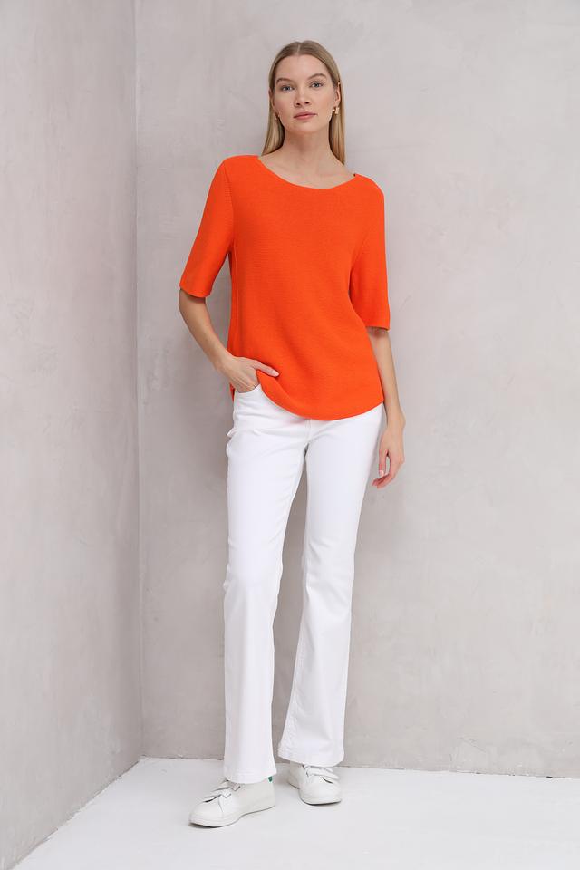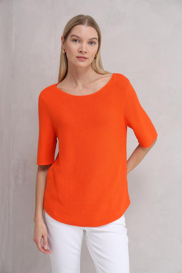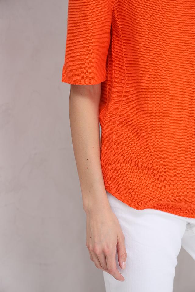 Оранжевый пуловер от Oui с рукавом 3/4 и округлым вырезом. Изготовлен из 100% хлопка, что обеспечивает комфорт и воздухопроницаемость. Стильный и универсальный выбор для повседневного гардероба. Состав: хлопок 100%