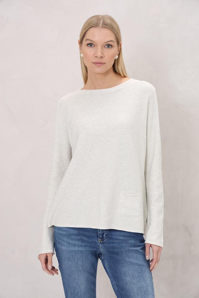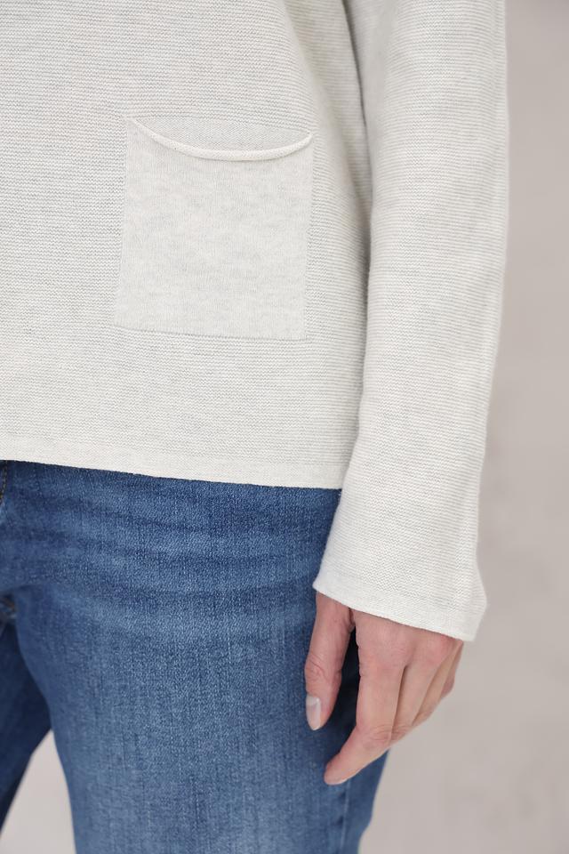Пуловер имеет свободный крой, который не сковывает движения и позволяет создать расслабленный силуэт. Округлый вырез горловины делает его универсальным и подходящим для различных типов внешности. На левой стороне изделия расположен накладной карман, добавляющий функциональности и оригинальности.
