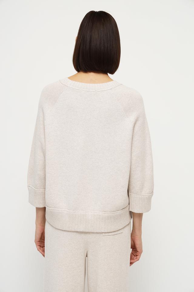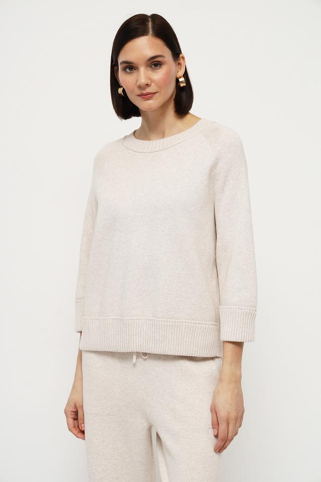 Пуловер имеет прямой крой, круглый вырез горловины и рукава три четверти. Мягкая текстура ткани обеспечивает комфорт в носке. Эластичные манжеты на рукавах и по низу изделия обеспечивают хорошую посадку по фигуре.