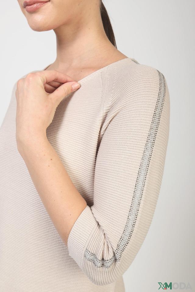 Бежевый пуловер Pezzo с полоской на рукавах – стильная и комфортная модель для создания повседневных образов. Изготовлен из мягкого сочетания акрила и хлопка, обеспечивающего приятные ощущения при носке. Состав: акрил 50%, хлопок 50%