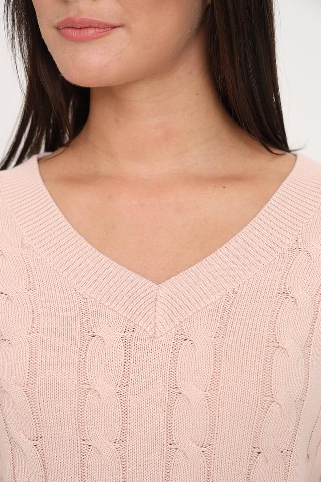 Персиковый пуловер Pezzo из 100% хлопка с V-образным вырезом и узором "косы". Этот стильный джемпер станет отличным дополнением к вашему гардеробу, сочетая в себе комфорт и актуальный дизайн. Состав: хлопок 100%