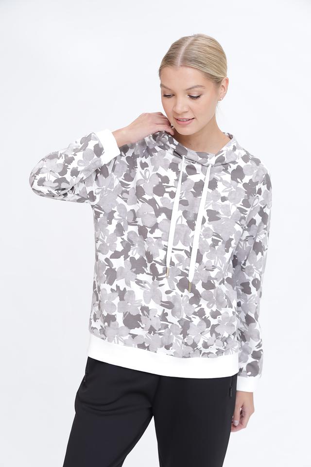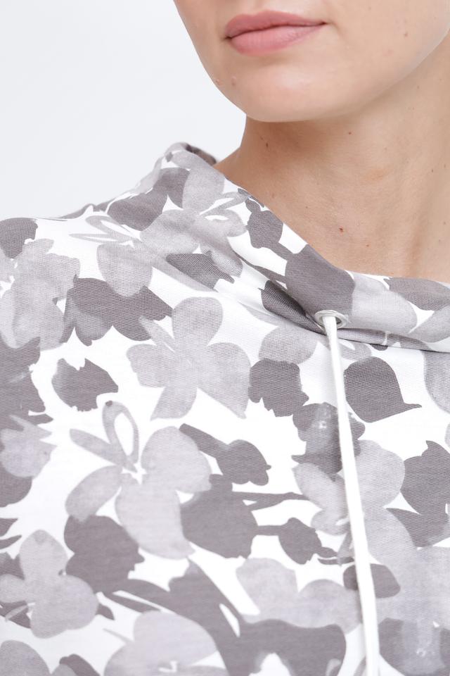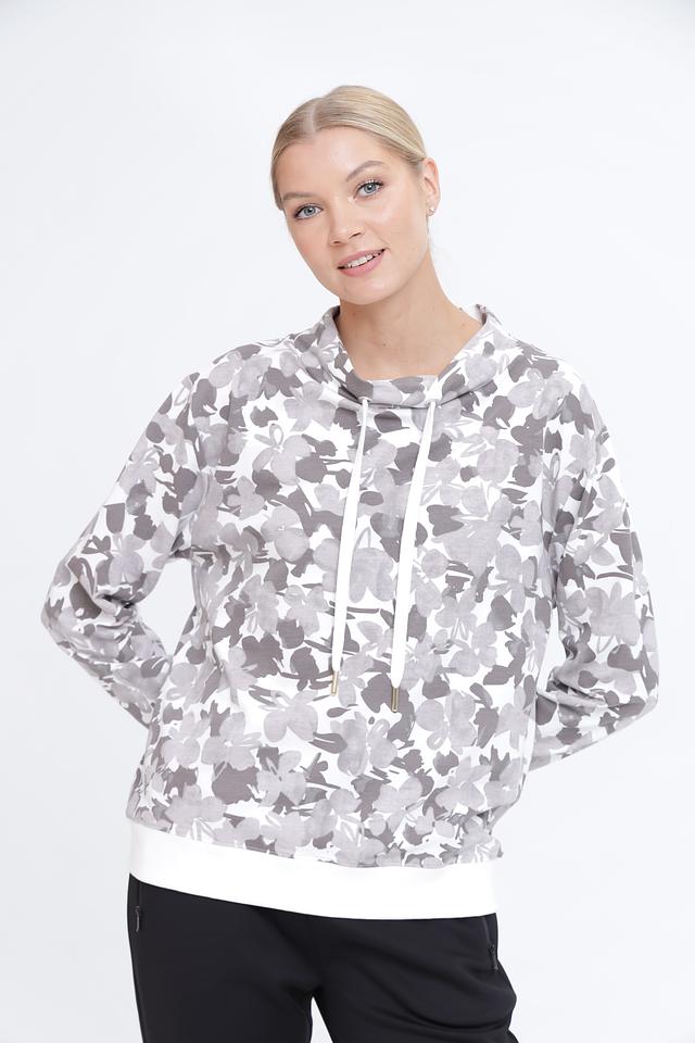 Стильный пуловер Pezzo серого цвета с цветочным принтом и капюшоном станет отличным дополнением к вашему гардеробу. Удобный крой и мягкий хлопок с добавлением полиэстера обеспечивают комфорт в носке. Состав: хлопок 60%, полиэстер 40%
