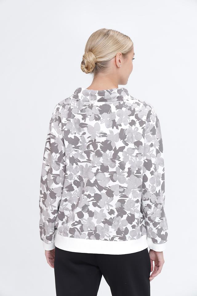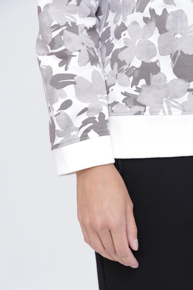 Этот пуловер от Pezzo – идеальный выбор для создания уютного и стильного образа. Модель выполнена в светло-серой цветовой гамме и украшена нежным цветочным принтом, который придает ей женственности.