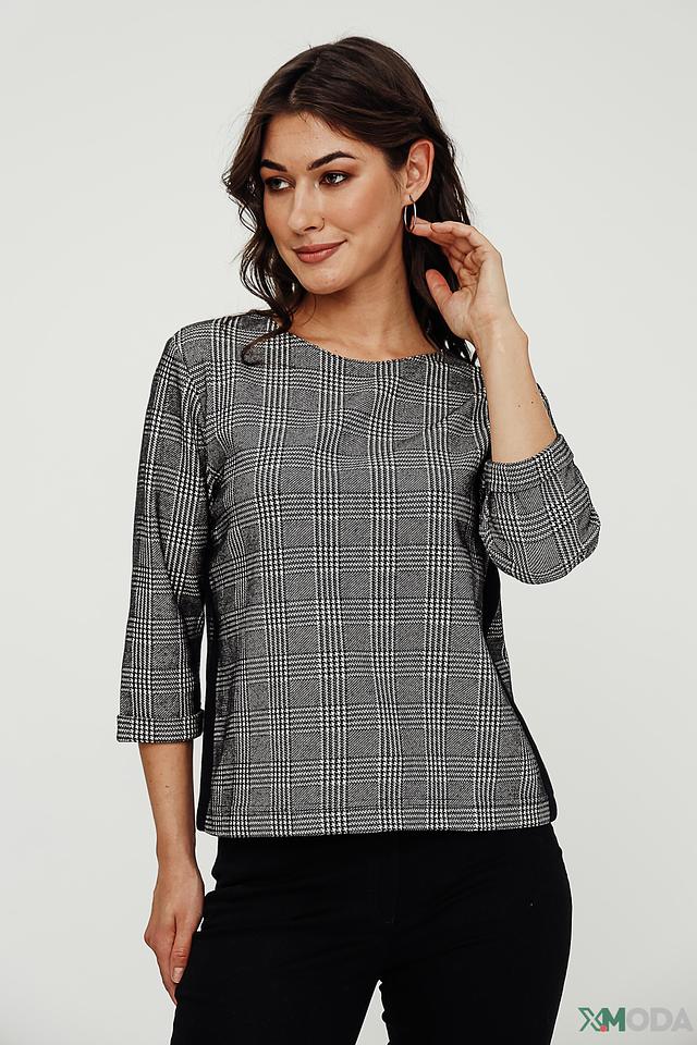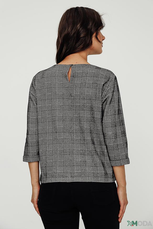 Стильный пуловер Pezzo серого цвета в классическую клетку станет отличным дополнением к вашему гардеробу. Модель с рукавом 3/4 и округлым вырезом подчеркнет женственность и создаст уютный образ. Состав: хлопок 88%, нейлон 10%, спандекс 2%