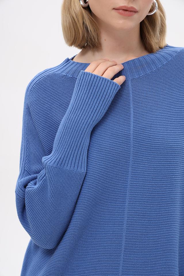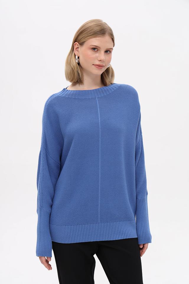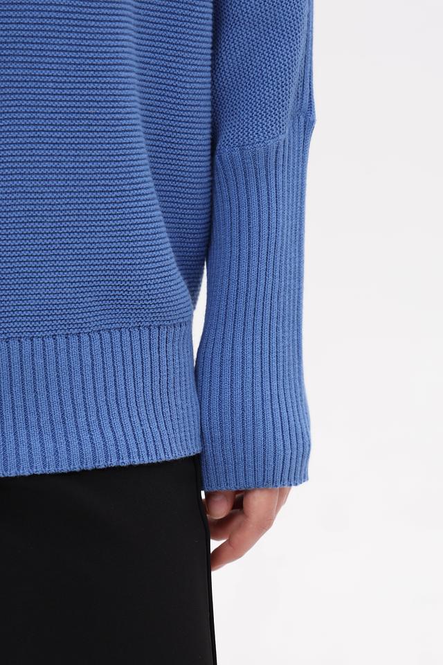 Голубой пуловер от Pezzo, выполненный из мягкого хлопка с добавлением акрила. Модель имеет свободный крой и актуальный дизайн с вертикальным швом. Состав: хлопок 60%, акрил 40%