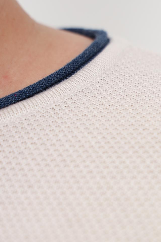 Модель имеет классический крой с круглым вырезом горловины и длинными рукавами. Пуловер изготовлен из высококачественного материала, сочетающего в себе 50% хлопка и 50% полиакрила. Хлопок обеспечивает мягкость и воздухопроницаемость, а полиакрил – устойчивость к деформации и долговечность.